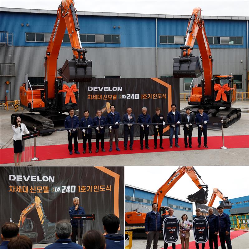 HD현대인프라코어는 19일(월) 인천 본사에서 차세대 신모델 가운데 하나인 24톤급 디벨론 중형 굴착기(DX240) 1호기에 대한 고객 전달식을 진행했다.