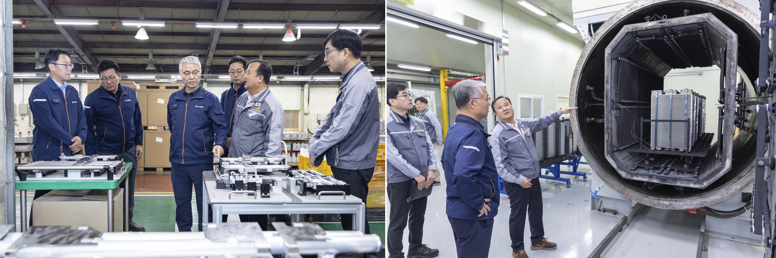 HD현대인프라코어 오승현 사장이 지난 5월 7일 협력사 해송엔지니어링을 방문해 건설장비 쿨링 모듈(Cooling Module) 생산 라인에 신규 구축한 진공 브레이징(Vacuum Brazing) 설비를 살피고, 생산 역량 및 시험 설비 등을 점검했다. 한국 충주를 비롯해 중국 청도와 상주에서 사업장을 운영 중인 해송엔지니어링은 HD현대 건설기계 3사에 쿨링 모듈을 공급하고 있으며, 최근 HD현대의 동반성장 자금 지원 프로그램을 활용해 신규 설비 투자를 진행했다.