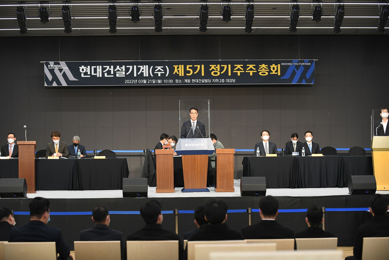 현대건설기계도 이날 서울 종로구 계동 현대빌딩 대강당에서 제5기 정기주주총회를 열고 △사외이사 겸 감사위원에 삼일회계법인 박기태 상근 고문 신규 선임 △재무제표 승인 △이사 보수한도 승인 등 안건을 모두 원안대로 통과시켰다. <끝>