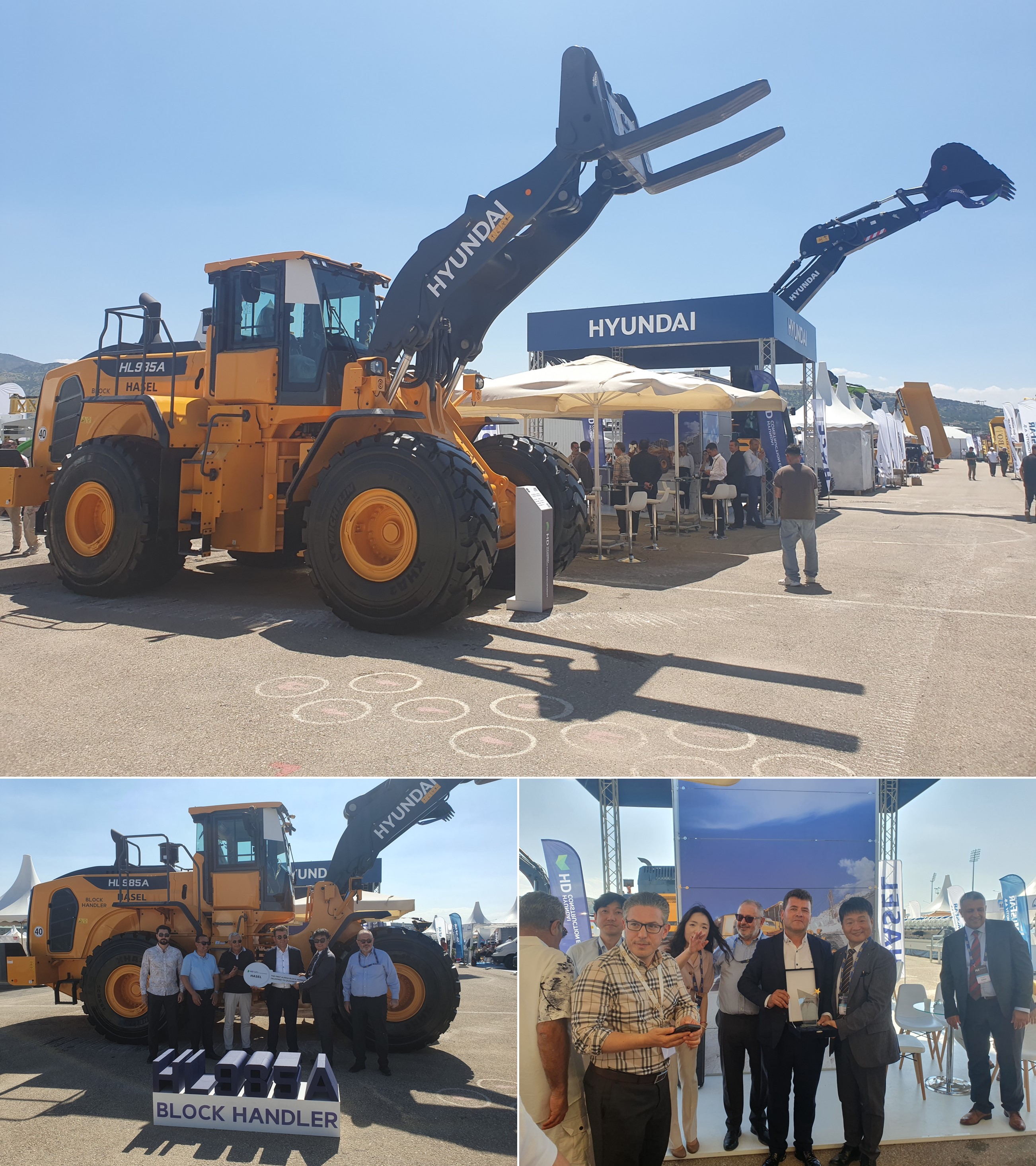 HD현대건설기계는 지난 6월 18일부터 21일까지 튀르키예에서 개최된 ‘아피온카라히사르 블록 마블 엑스포’에 참가해 대형 석재 운반용 특수 휠로더인 블록핸들러 신규 모델 HL985A BH의 첫 출고 기념식을 열고, 현지 딜러사가 개최하는 오픈하우스 행사에도 전시해 참관객들의 이목을 끌었다.