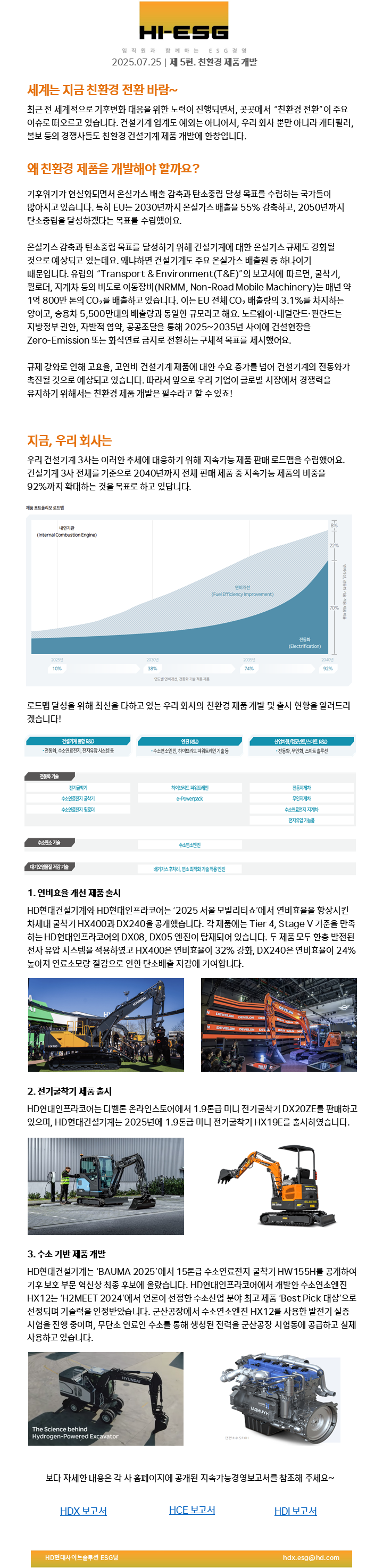 안녕하세요, 건설기계부문 3사 임직원 대상으로 ESG인지도를 높이고자 배포하는 Hi-ESG입니다 !