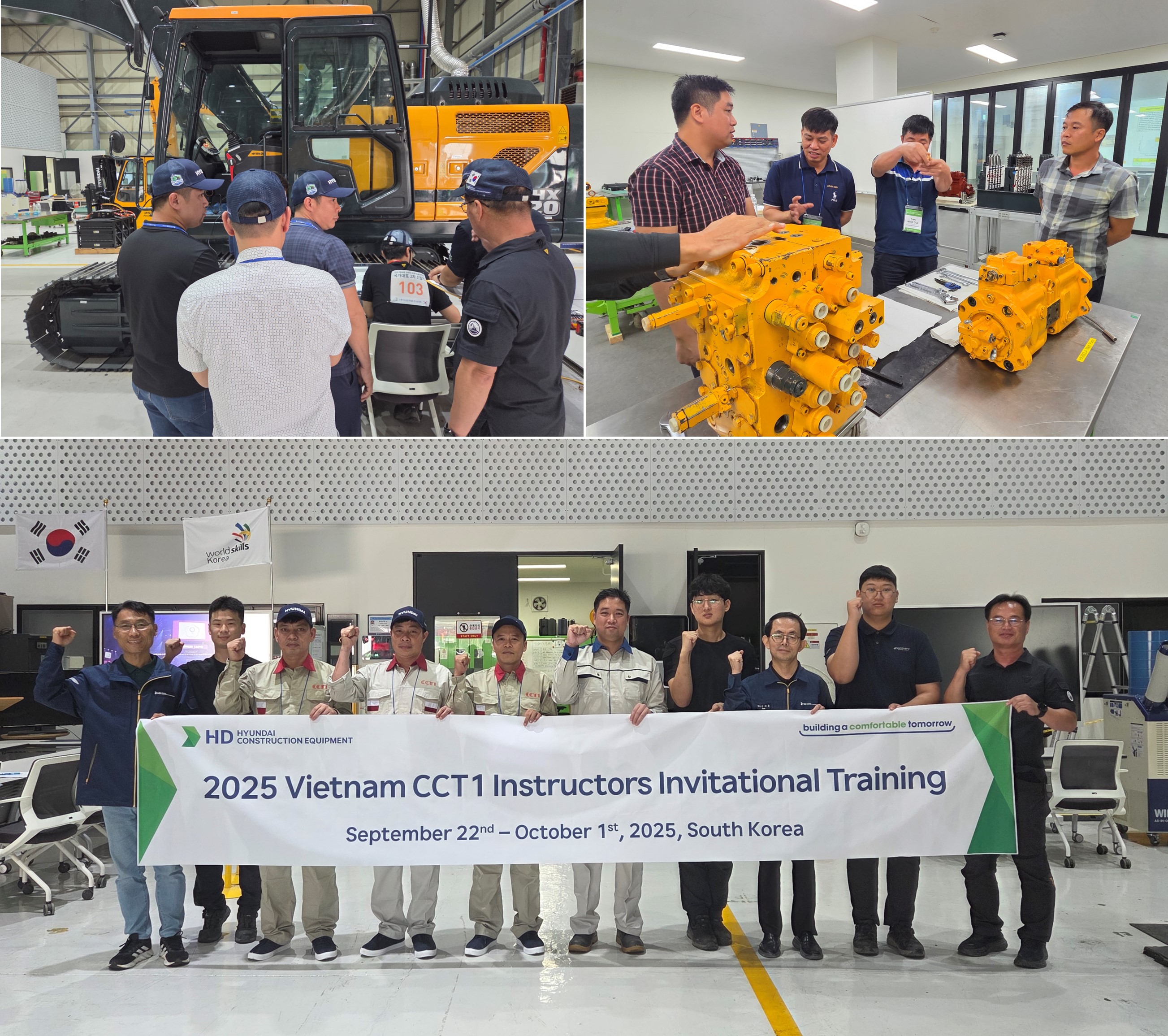 지난 9월 21일부터 10월 1일까지는 CCT1 소속 교·강사 3명이 음성 글로벌교육센터에서 굴착기의 주요 기능품과 정비에 대한 이론 및 실습 교육을 수강하며 기술 역량을 강화했다. 또한 해당 기간 중 개최된 국제기능올림픽 국가대표 선발전을 참관하며, HD현대건설기계의 선진 훈련 체계와 교육 인프라를 직접 경험했다.