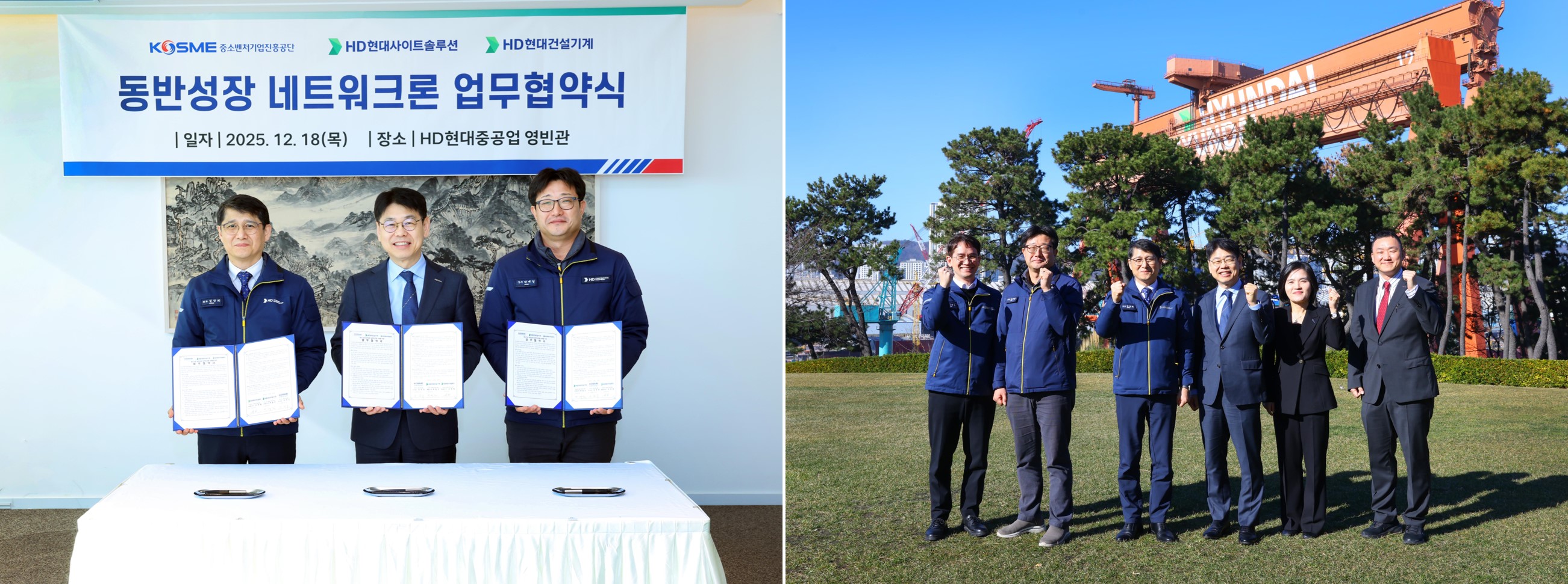 HD현대 건설기계 부문이 지난 12월 18일 울산캠퍼스에서 중소벤처기업진흥공단(이하 중진공)과 중소 협력사 자금지원을 위한 ‘동반성장 네트워크론’ 업무 협약을 체결했다.