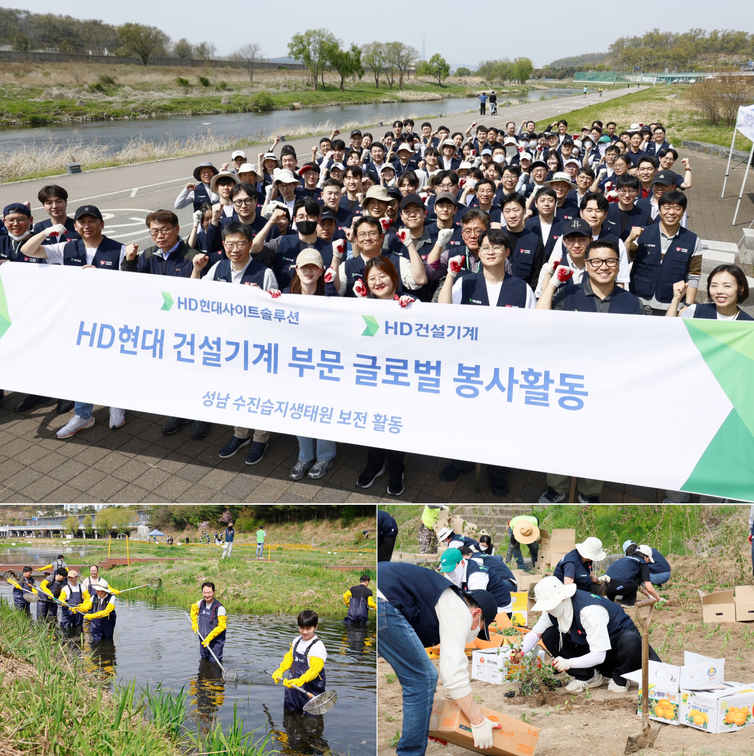 HD건설기계 임직원들은 성남 수진 습지 생태원을 찾아 습지의 녹조, 침전물, 각종 부유물과 주변 잔가지 등을 제거했다. 또, 꿀과 꽃가루가 풍부한 밀원식물을 심고, 야생벌이 서식할 수 있는 비 호텔(Bee Hotel)을 설치했다.