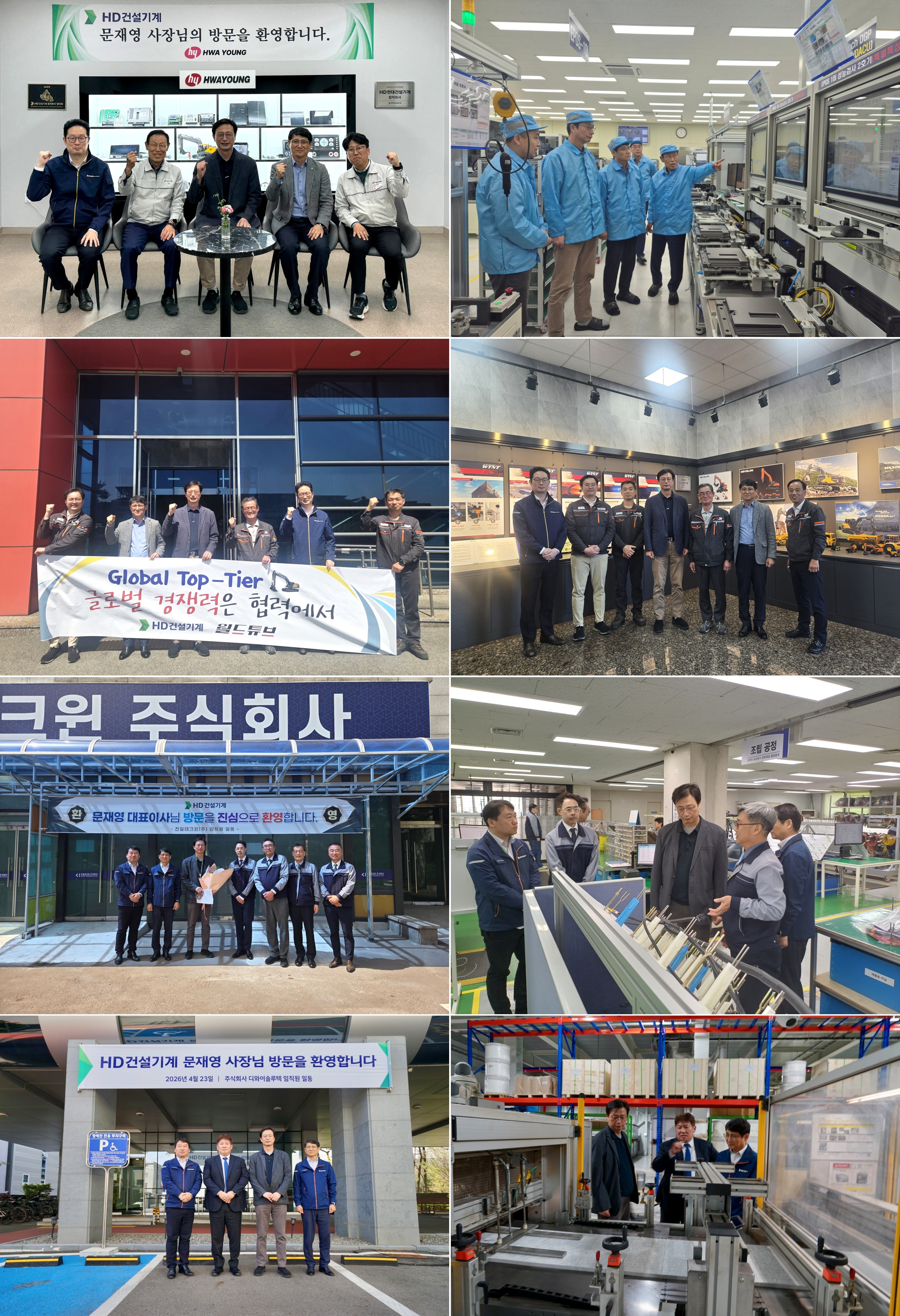 문재영 사장은 지난 4월 16일 월드튜브와 화영을 방문한 데 이어 23일에는 천일테크윈, 디와이솔루텍, 가레트모션코리아를 방문했으며, 김종철 부사장은 17일 두산모트롤과 디와이피를 찾아 협력 방안과 지원 방향을 논의했다. 정창화 전무도 전 일정에 동행하며 협력사의 운영 현황을 함께 살폈다.