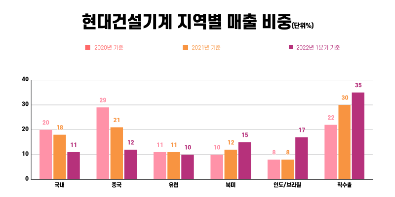 포트폴리오 다변화로 매출 성장세에 있는 지역의 시장 전망도 밝은 편이다. 중남미, 아시아 등 신흥시장은 원자재 가격 상승으로 인한 대형 건설장비의 수요가 지속 증가하고 있으며, 미국과 유럽 등 선진시장은 부동산 경기 호조세와 정부차원의 대규모 인프라 투자 집행이 예고돼 있다. 또, 이번 분기 위축됐던 중국 역시 코로나19가 안정세에 접어들면, 올 하반기부터 인프라 투자가 재개될 것으로 예상된다.