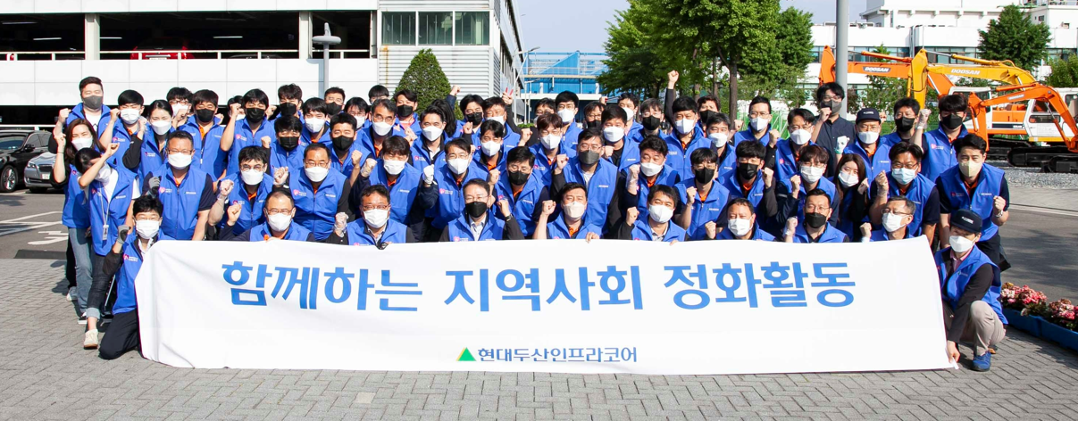 현대두산인프라코어 임직원 70여명이 지난 8일 인천공장 사업장 인근 화수부두와 화도진중학교 인근에서 환경정화 활동을 펼쳤다.