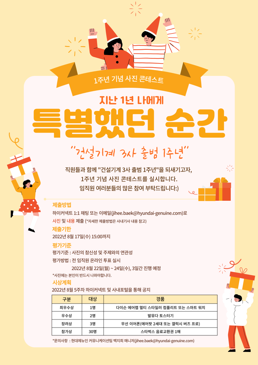 직원들과 함께 건설기계 3사 출범 1주년을 되새기고자, 현대중공업그룹 건설기계 3사 직원들을 대상으로
