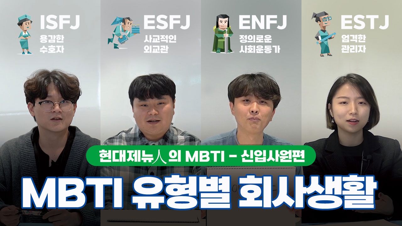 사전 신입사원 100여명을 대상으로 MBTI 설문을 진행한 결과를 바탕으로, 가장 많은 상위 4가지 유형의 매니저, 책임매니저 각 1분씩 총 8분을 모셨습니다. 오늘 영상은 매니저 4분으로 구성된 신입사원편이며, 다음 주 금요일(21일) 선배편도 게재될 예정입니다.