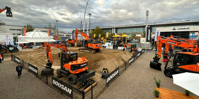 현대두산인프라코어는 이번 바우마 전시회에서 처음으로 데모장을 운영, 무인 굴착기를 원격 조종하며 많은 참관객들의 이목을 끌었다.현대두산인프라코어가 2023년 출시 예정인 1.7톤 미니 전기굴착기와 하이브리드 엔진이 장착된 굴착기 등 친환경 건설장비와 미니 굴착기 시리즈를 비롯한 각종 굴착기 라인업이 전시되어 있다.그 밖에도 굴절식 덤프 트럭, 휠로더를 포함한 약 30대의 건설장비가 부스에서 관람객을 맞이했다.