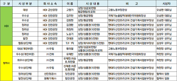 ※ 제6회 현대두산인프라코어 용접 기능경기대회 수상자 명단