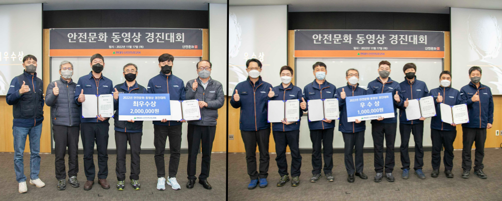 이날 경진대회에서는 8개 본선 진출작을 발표했으며, 처음 도입한 실시간 평가를 통해 중대형공정품질직의 “안전방위대”가 대상을 받았다. 중대형공정품질직은 SNS에서 유행하는 ‘지구방위대 챌린지’를 패러디한 "안전방위대"로 안전행동 및 안전대화를 재치있게 소개했다.