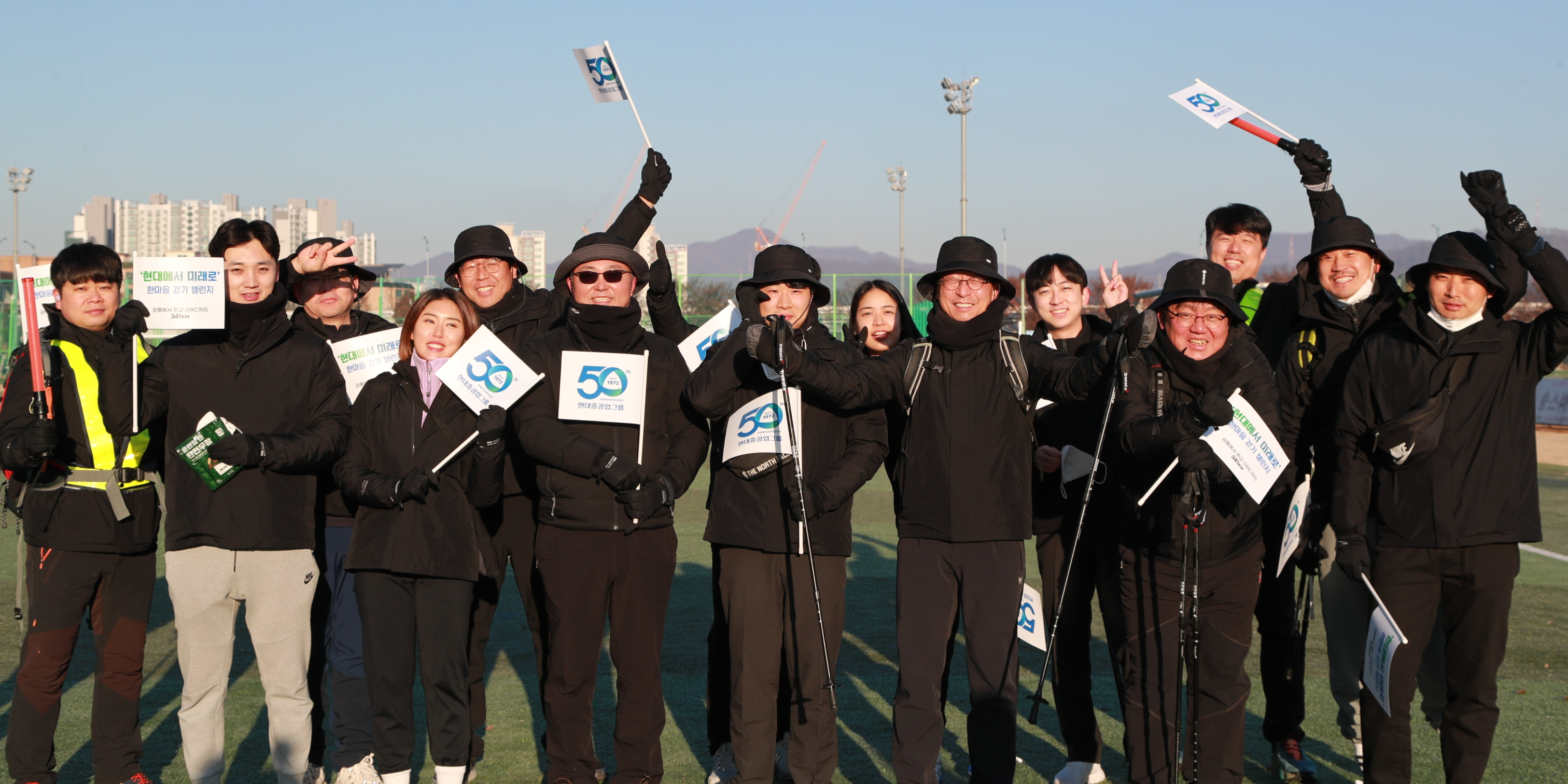 건설기계 3사 임직원이 지난 12월 1일, 2일 양일간 현대중공업그룹 창립 50주년과 글로벌연구개발센터(GRC) 준공을 기념해 진행 중인 ‘현대에서 미래로’ 걷기 챌린지에 참여했다.