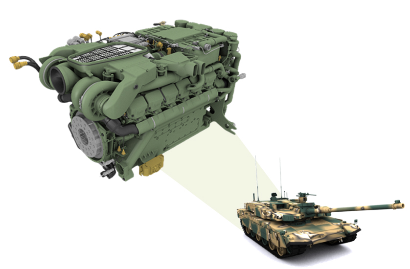 폴란드 수출용 K2 전차에 탑재되는 엔진은 현대두산인프라코어가 독자 기술로 개발한 것으로, 27리터 배기량의 V형 12기통 트윈 터보 디젤엔진이다. 이 엔진은 56톤 전차를 최고 시속 70km로 주행할 수 있는 고속, 고출력 성능을 갖추고 있으며, 우수한 연비와 해외 경쟁사 대비 저온시동성이 탁월하다는 장점을 가지고 있다.