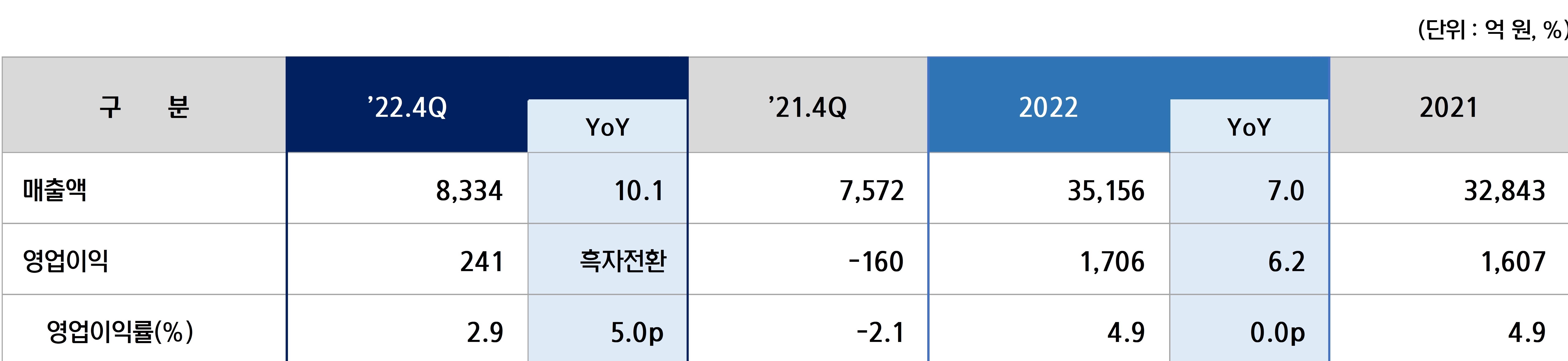 지난 4분기 실적으로는 매출 8,334억원, 영업이익 241억원을 기록, 전년 동기 대비 흑자 전환했다.