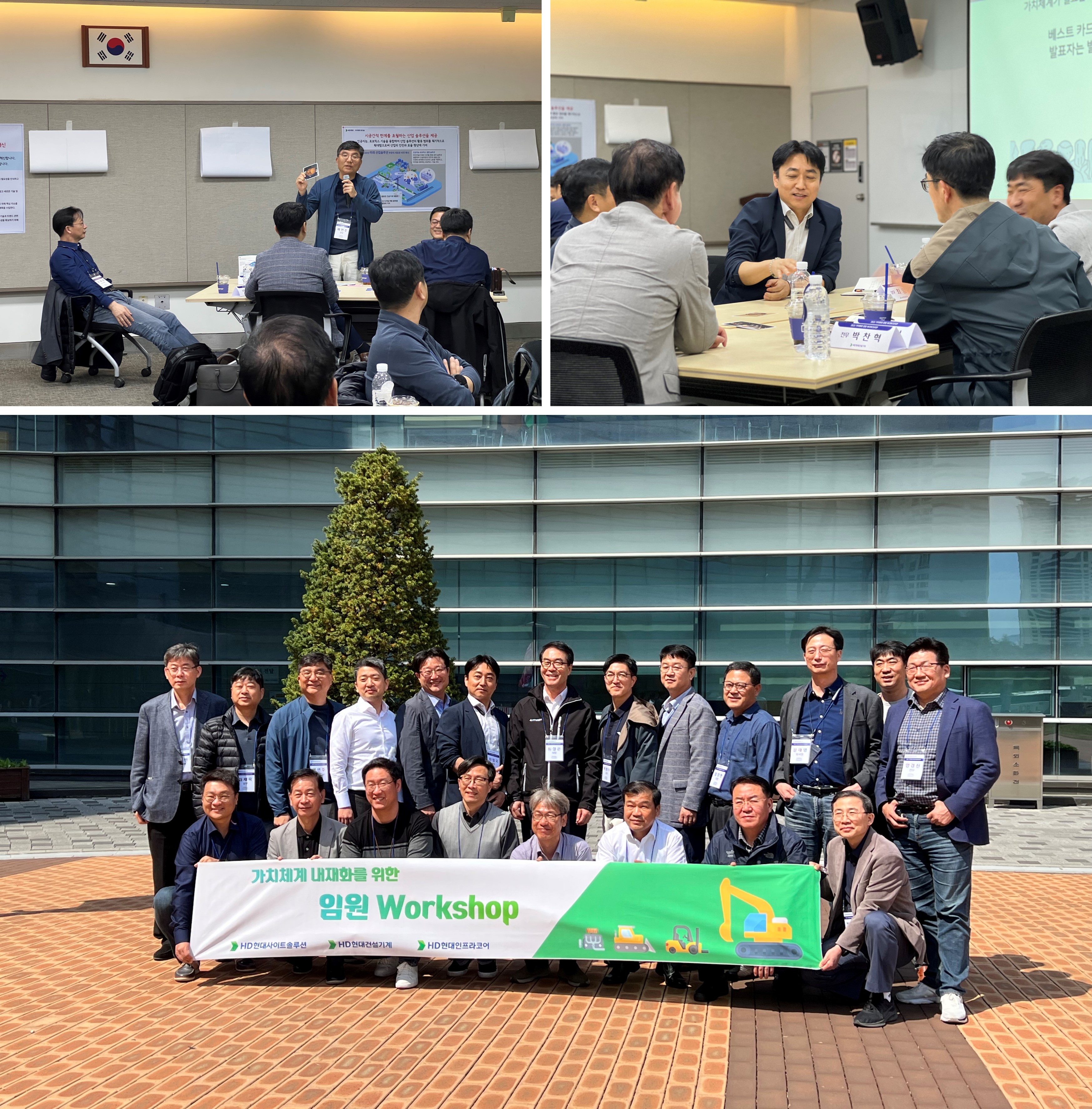 HD현대 건설기계 3사가 각 사 임원 대상으로 HD현대 가치체계 내재화 워크샵을 실시했다. HD현대사이트솔루션은 3월 23일 분당 GRC에서, HD현대인프라코어는 3월 29일 인천 GBC에서, HD현대건설기계는 4월 7일 분당 잡월드 창의실에서 실시했다.
