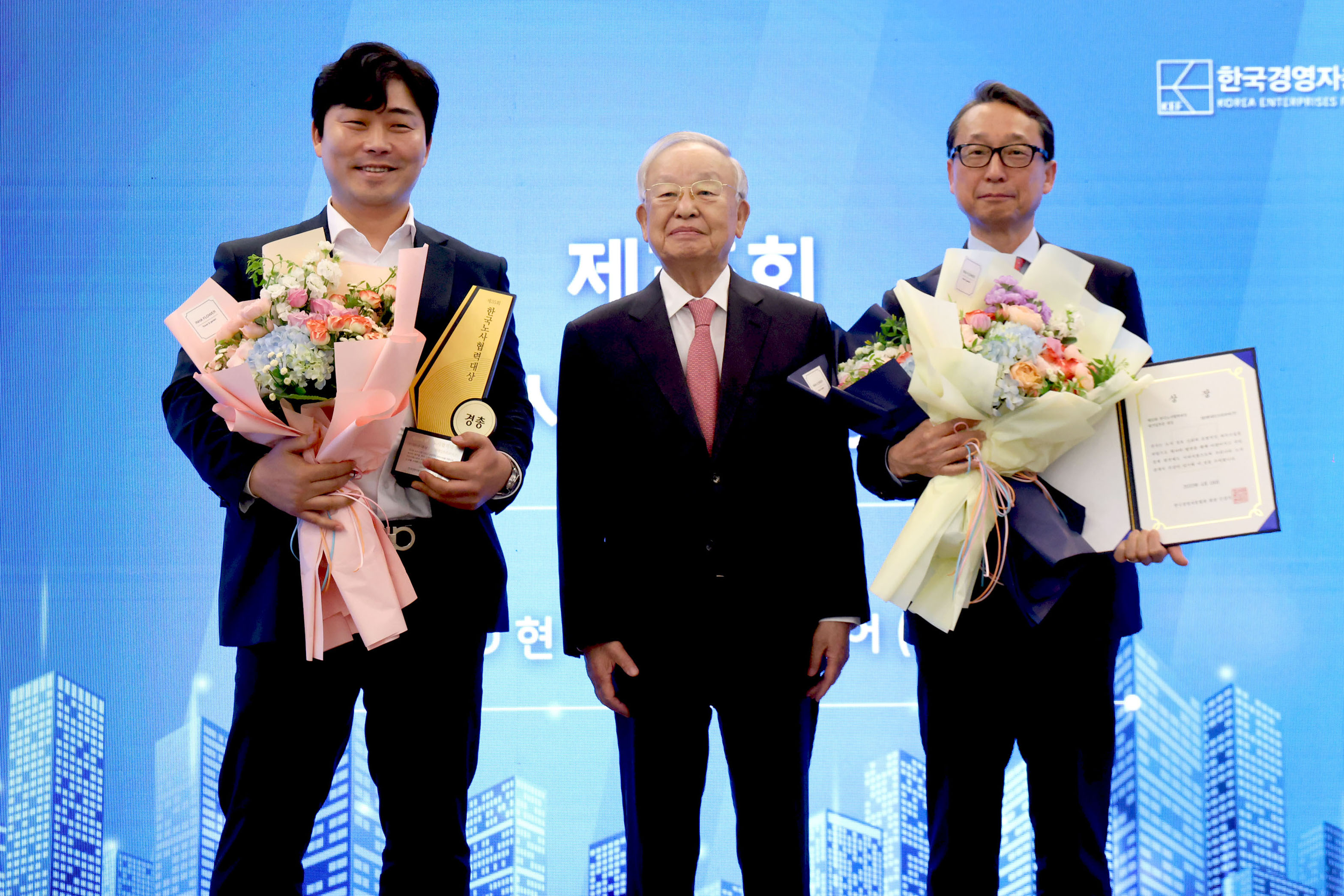 △ 경총 '제35회 한국노사협력대상' 시상식에서 HD현대인프라코어 조영철 사장, 안재선 대표노조 위원장을 비롯한