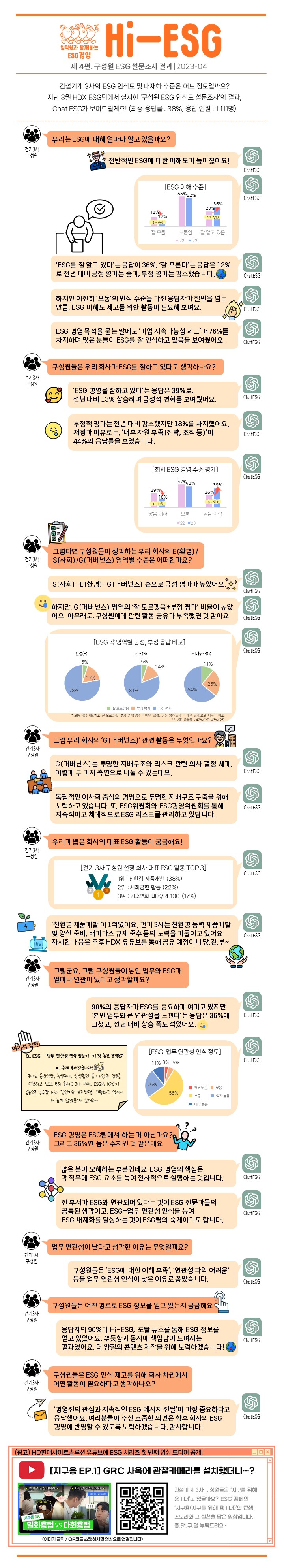 안녕하세요, 건설기계부문 3사 임직원 대상으로 ESG인지도를 높이고자 정기적으로 배포하는 Hi-ESG 2023-4화입니다.