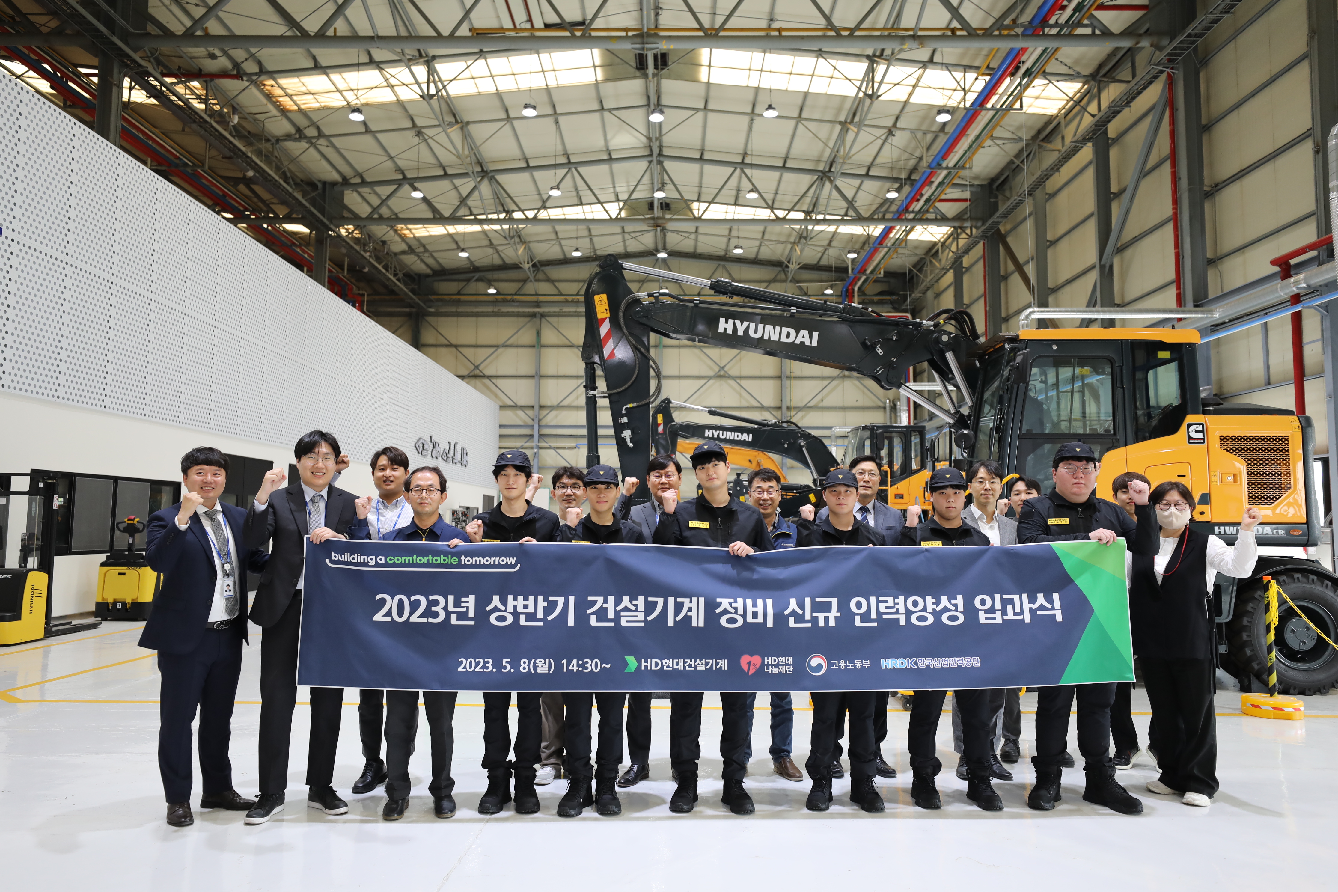 HD현대건설기계는 지난 8일 충북 음성군 글로벌교육센터에서 HD현대1%나눔재단, 한국산업인력공단충북북부지사 등 관계자들이 참석한 가운데 ‘2023 상반기 건설기계 정비 신규인력 양성과정 2기 입과식’을 가졌다.