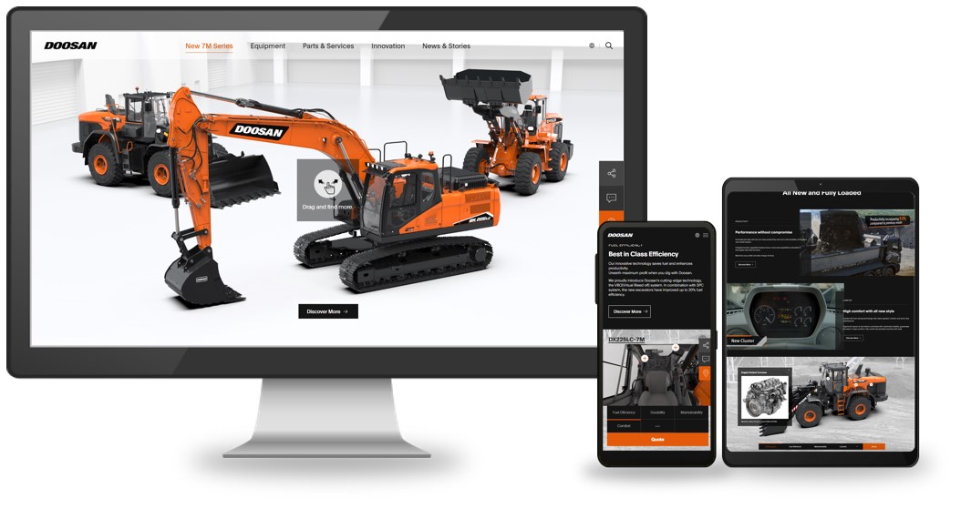 현대두산인프라코어는 최근 신흥시장 웹사이트 내에 신기종 New 7M 시리즈를 살펴볼 수 있는 버추얼 쇼룸 페이지를 선보였다.