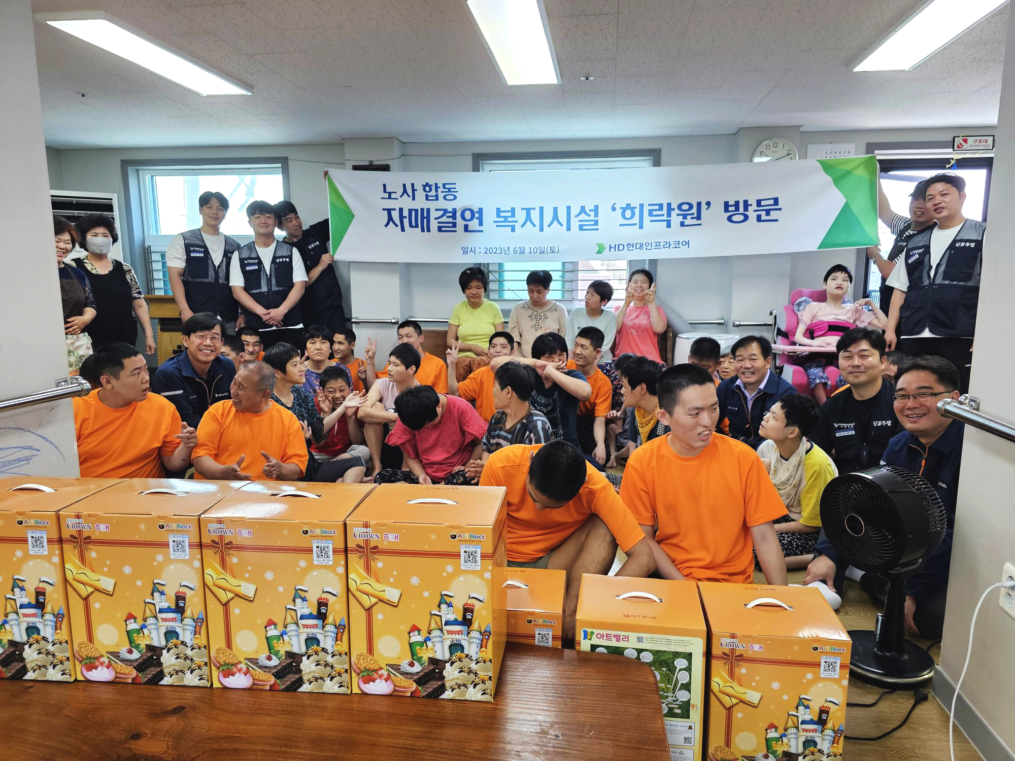 HD현대인프라코어 노사가 지난 6월 10일 인천시 중구 내동에 위치한 사회복지시설 ‘희락원’을 방문해 사랑 나눔 지원활동을 펼쳤다.