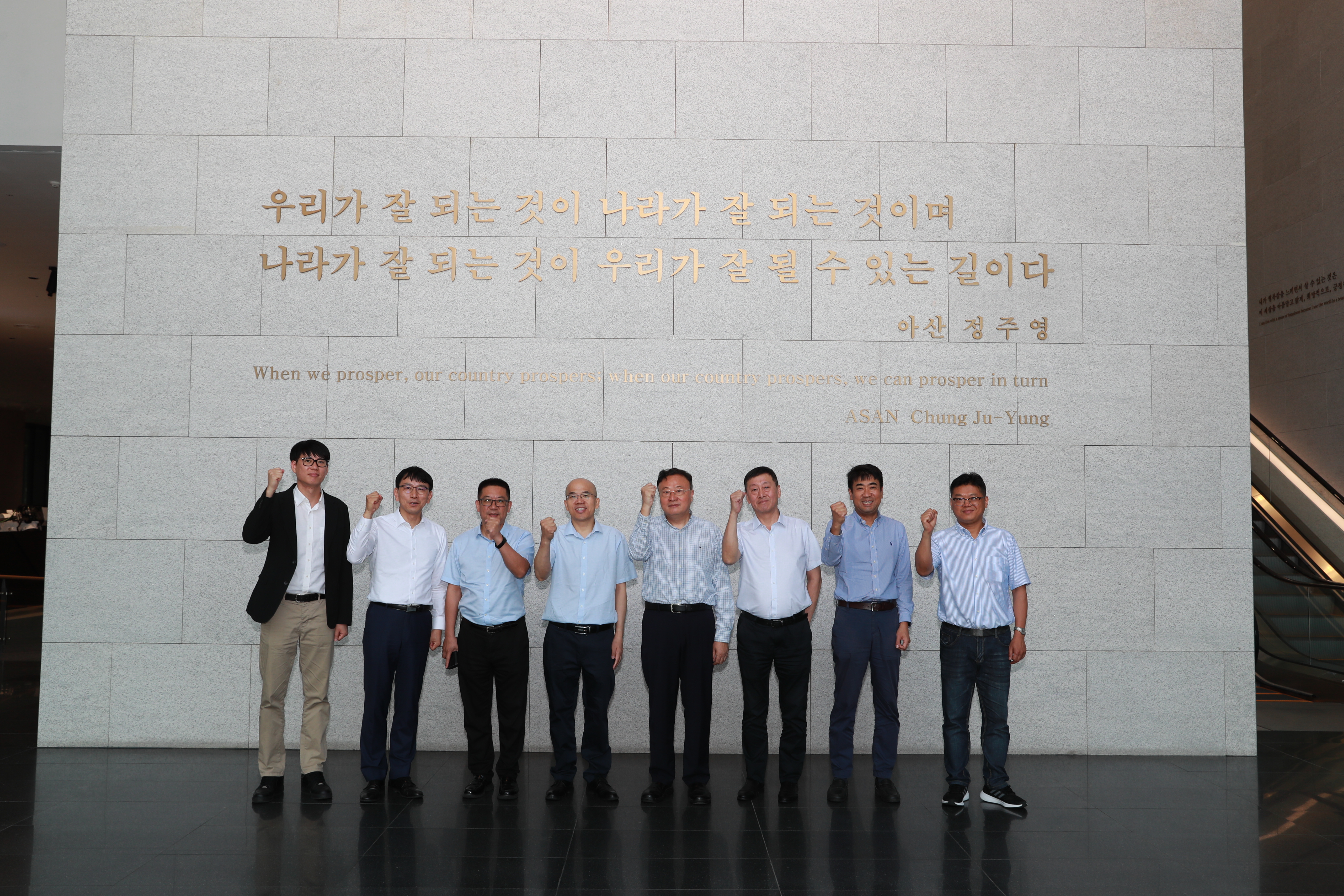 △ HD현대건설기계 경영진과 중국 ‘상림’ 지주사인 ‘복마그룹’ 손봉 동사장 등 관계자들이 지난 6월 27일 GRC를 방문해 기념촬영을 하고 있다