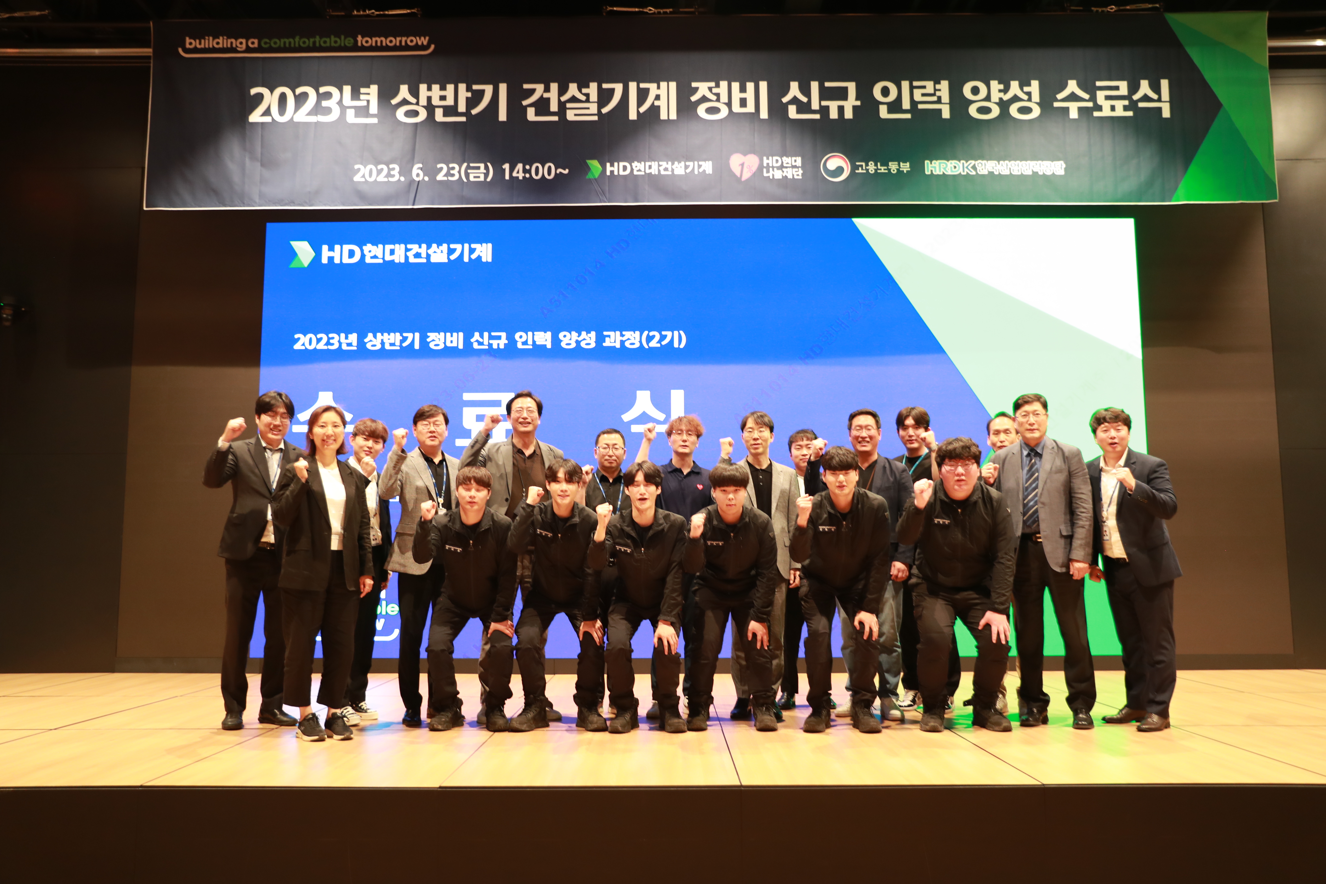 HD현대건설기계 글로벌교육센터는 지난 6월 23일 GRC 1층 아산홀에서 ‘2023년 상반기 건설기계 정비 신규 인력 양성 과정 수료식’을 가졌다.