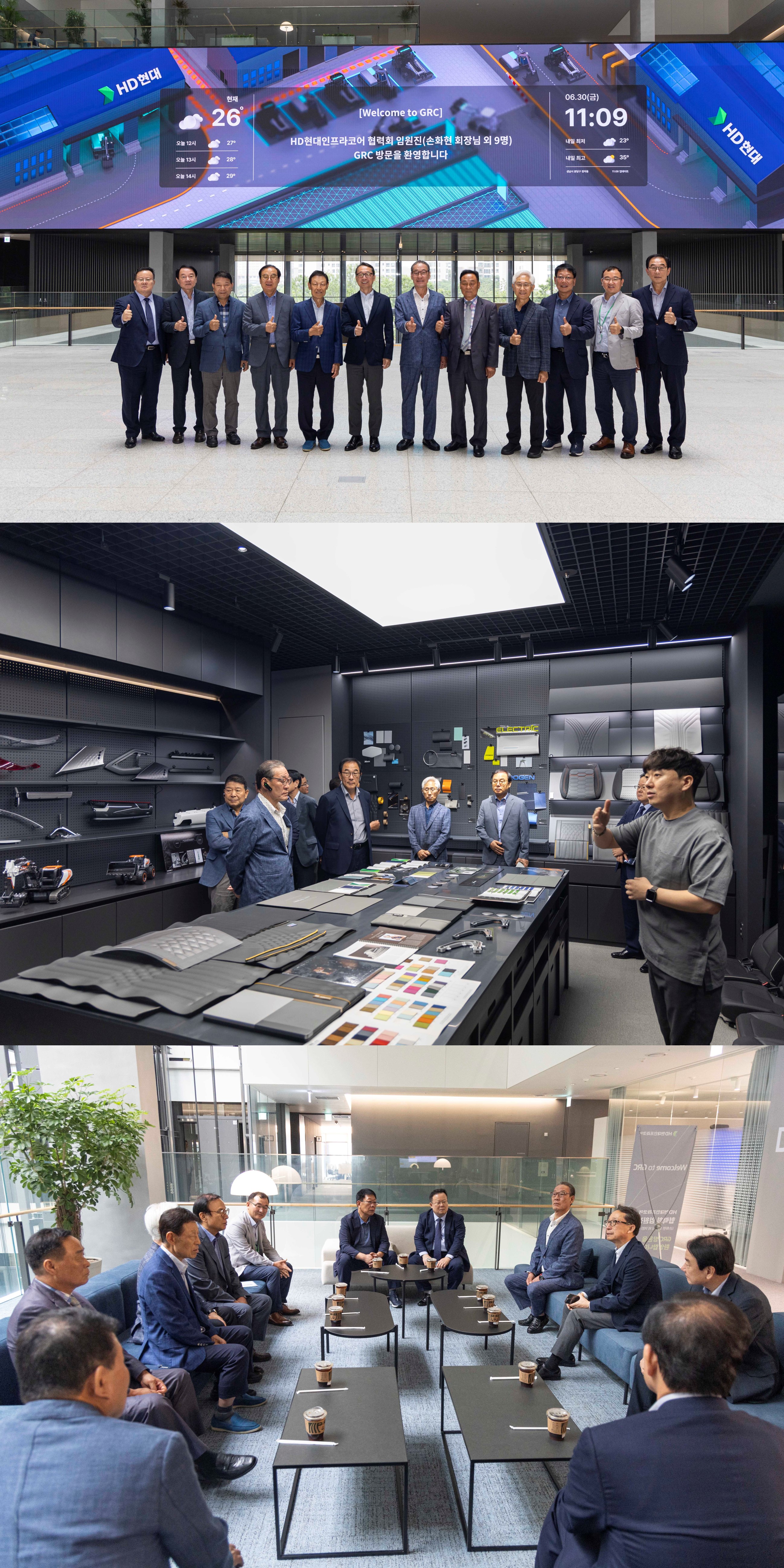 이날 협력회의 임원들은 HD현대인프라코어의 업무 공간인 12, 13층을 시작으로 7층 디자인센터로 이동해 건설기계가 디자인되는 과정과 주요 컨셉 등에 대해 설명을 듣는 시간을 갖고, 1층 전시물과 아산홀 등 GRC를 둘러봤다.
