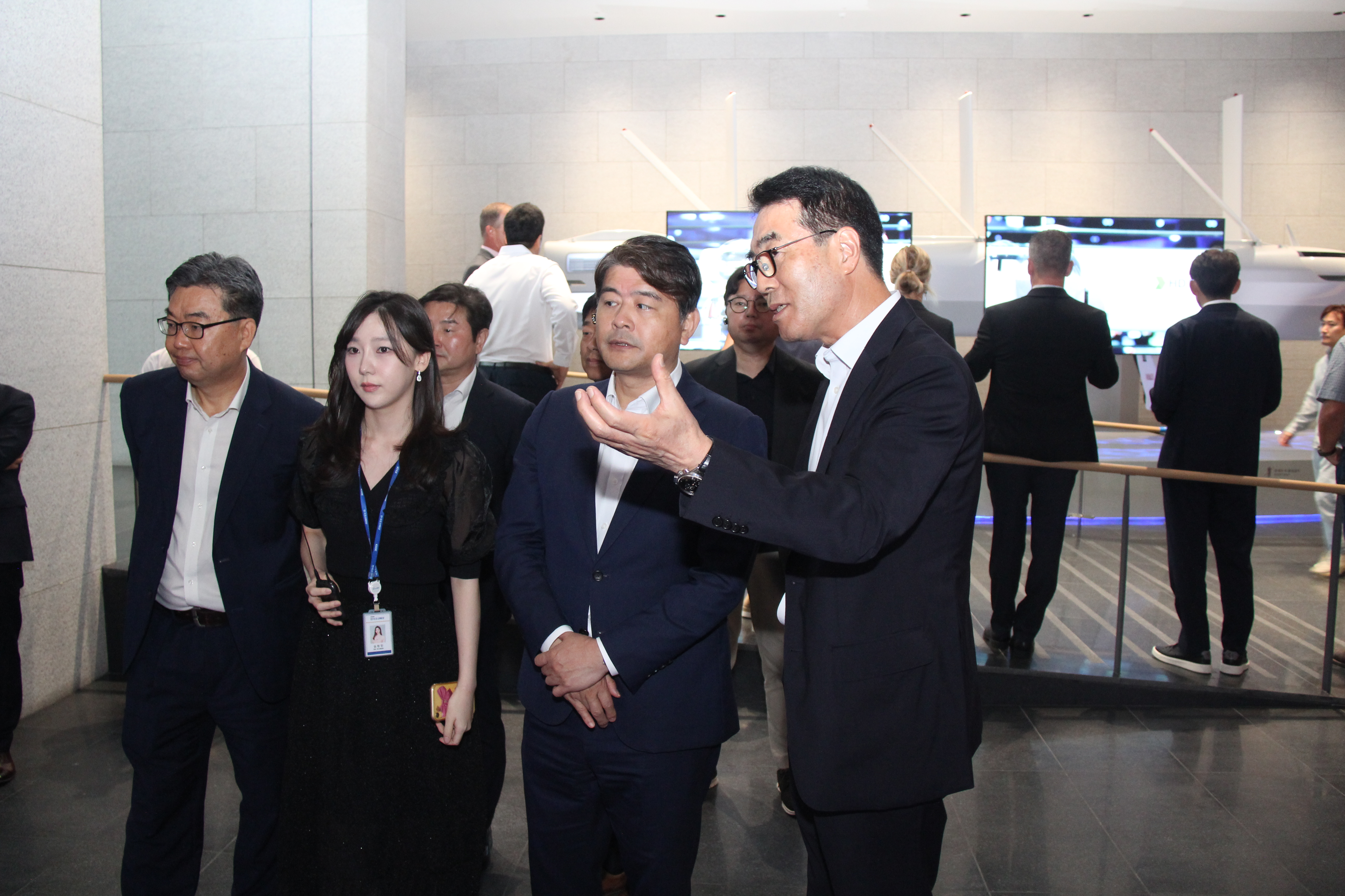 △ 최철곤 사장이 방문객들을 위해 GRC 곳곳을 직접 소개하고, HD현대건설기계 울산캠퍼스 선진화 공사에 대해 설명하는 모습