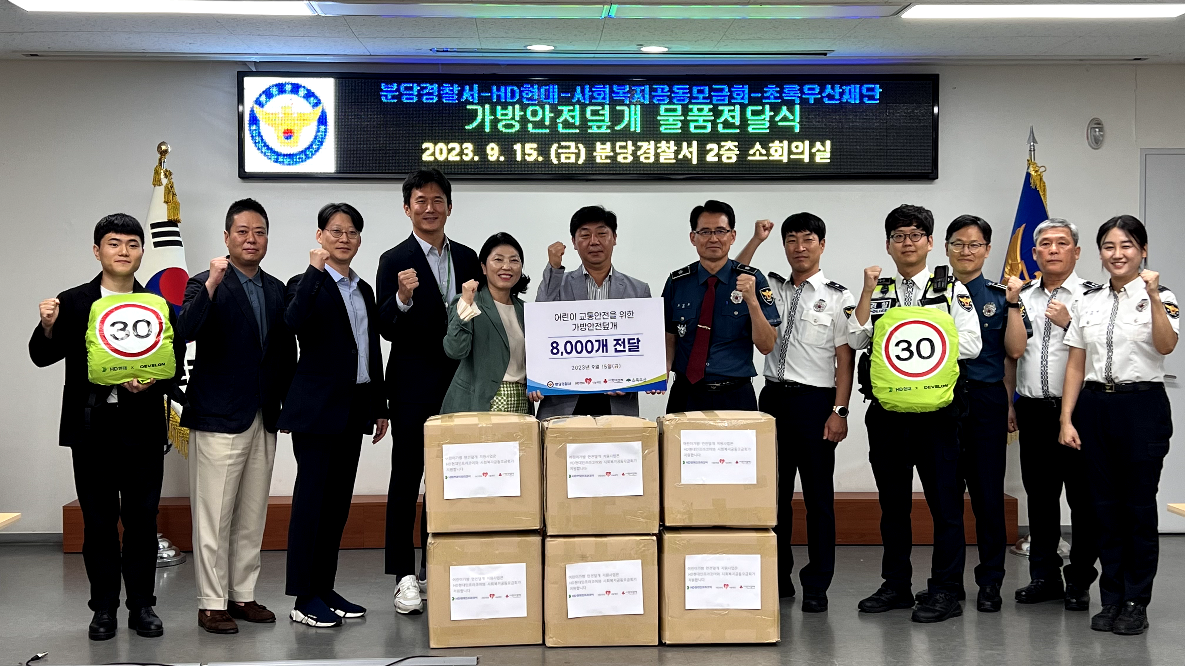 - 1%급여나눔기금으로 ‘어린이 가방안전덮개’ 제작해 분당경찰서 전달