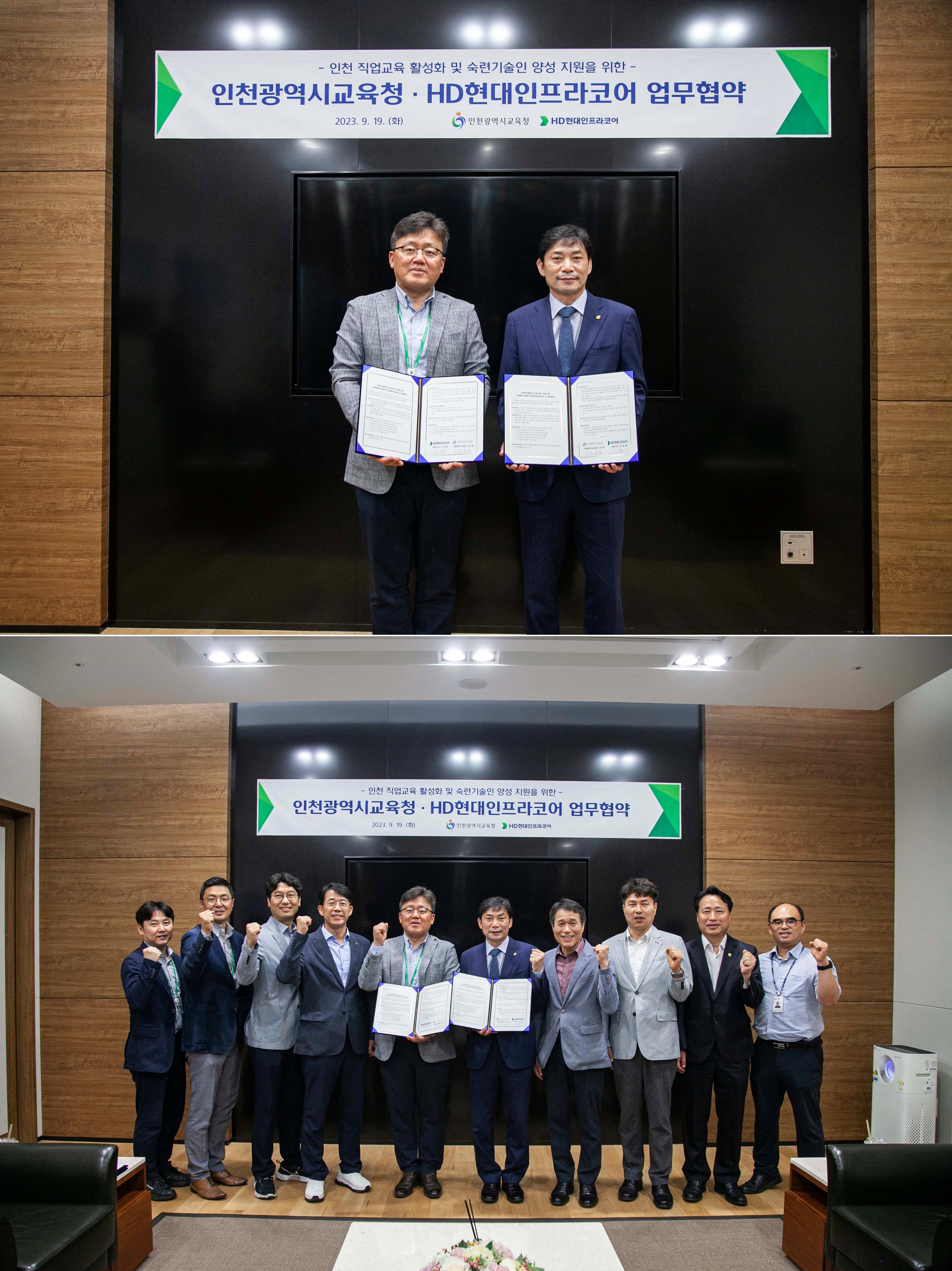 HD현대인프라코어가 9월 19일 직업교육 활성화 및 숙련기술인 양성을 위해 인천광역시 교육청과 업무협약을 체결했다.