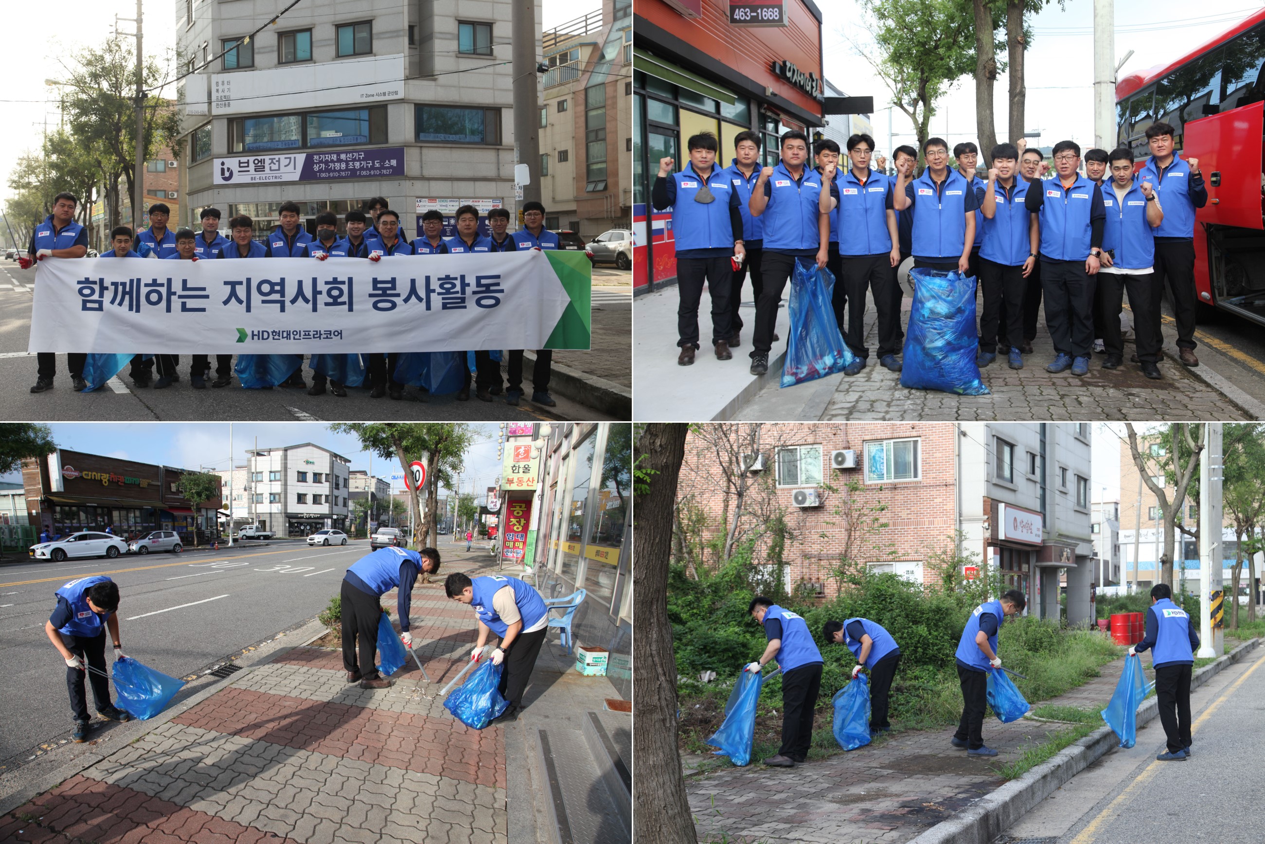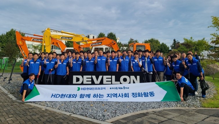HD현대인프라코어는 건설기계 3사 사회공헌 슬로건인 ‘#지구를위해용기내’를 테마로 사업장이 위치한 안산(9/13), 군산(9/18), 인천(9/21), 성남(9/21)에서 환경정화 활동을 펼쳤다.