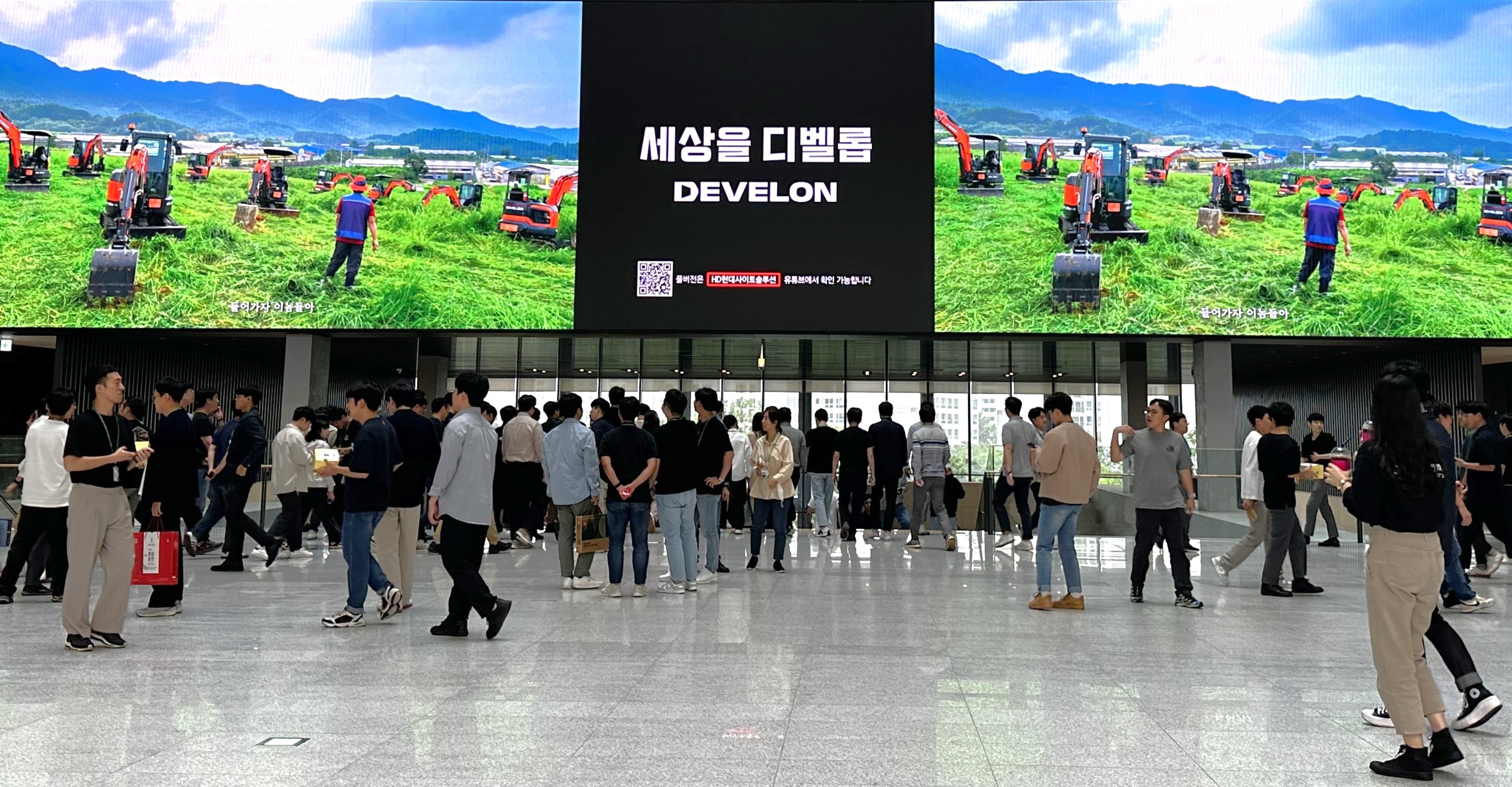 한편, HD현대인프라코어는 해당 영상을 판교 GRC(글로벌 R&D 센터) 4층 로비 미디어 월과 엘리베이터 안내 스크린에도 게재하여 임직원들에게 건설기계 부문의 이색 행보를 알리고 있다. 임직원들 사이에서도 “입사 후에 그동안 봤던 회사·장비·브랜드 영상들 중 단연 최고!”, “해외고객들도 보면 빵 터질 듯, 영문 버전은 계획 없으신가요?” 등 긍정적인 평가가 이어지고 있다.
