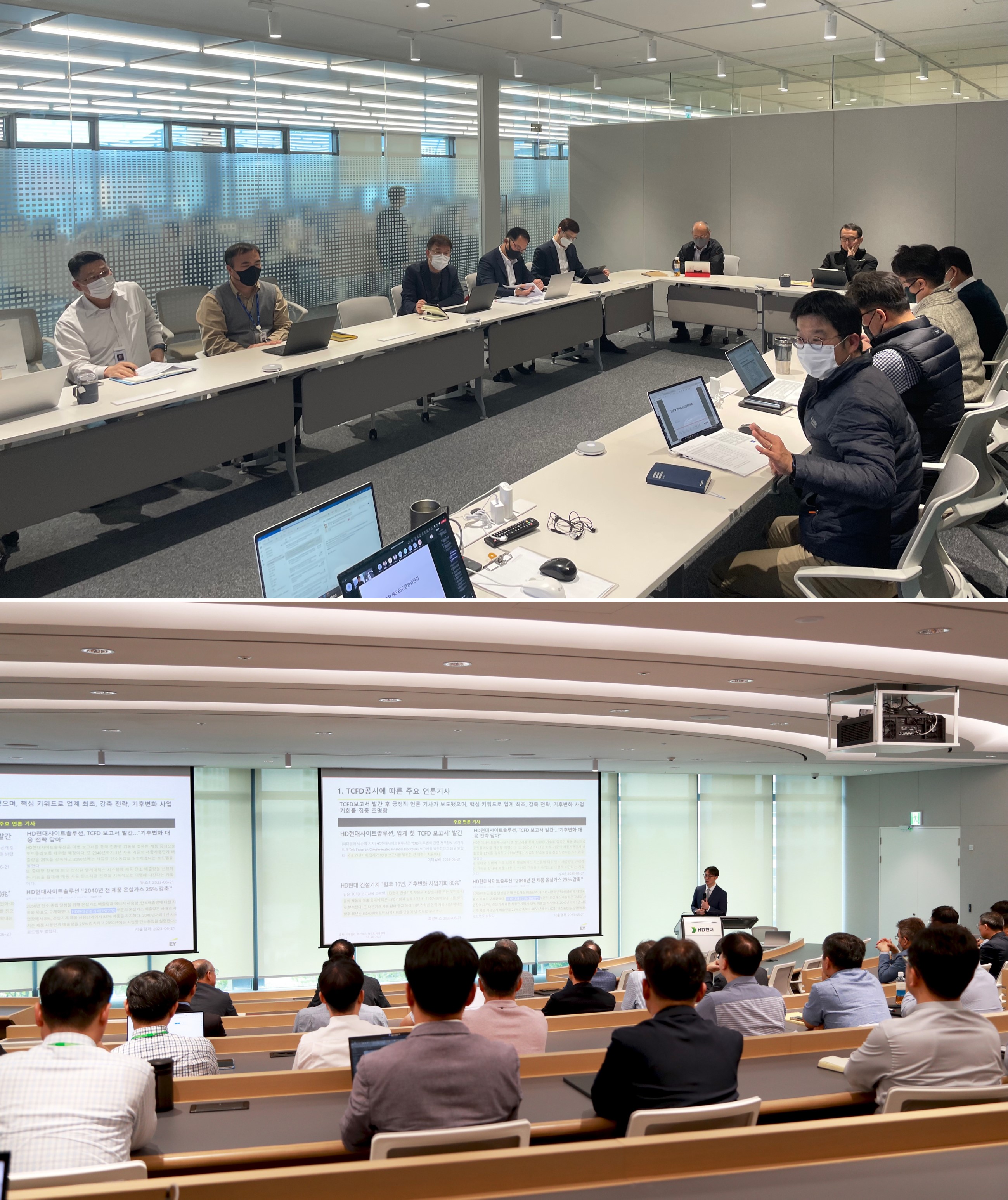 △ (위) 2월 15일 건설기계 3사 ESG 경영위원회 실시 모습 (아래) 7월 17일 건설기계 3사 ESG 리더 특강 진행 모습