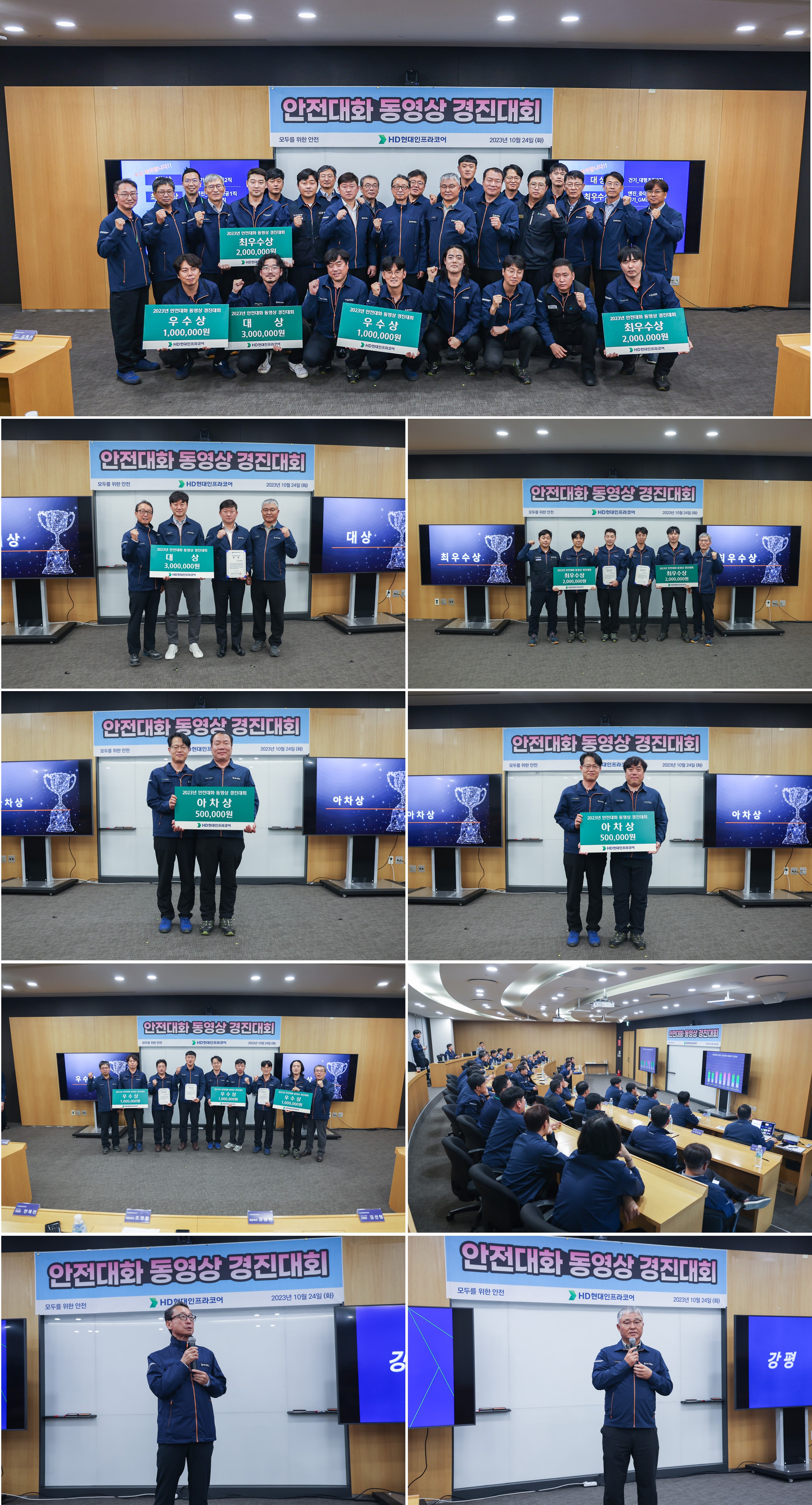△ HD현대인프라코어가 10월 24일 GBC 2층 컨퍼런스룸에서 ‘2023 안전대화 동영상 경진대회’에 대한 최종심사 및 시상식을 개최했다.