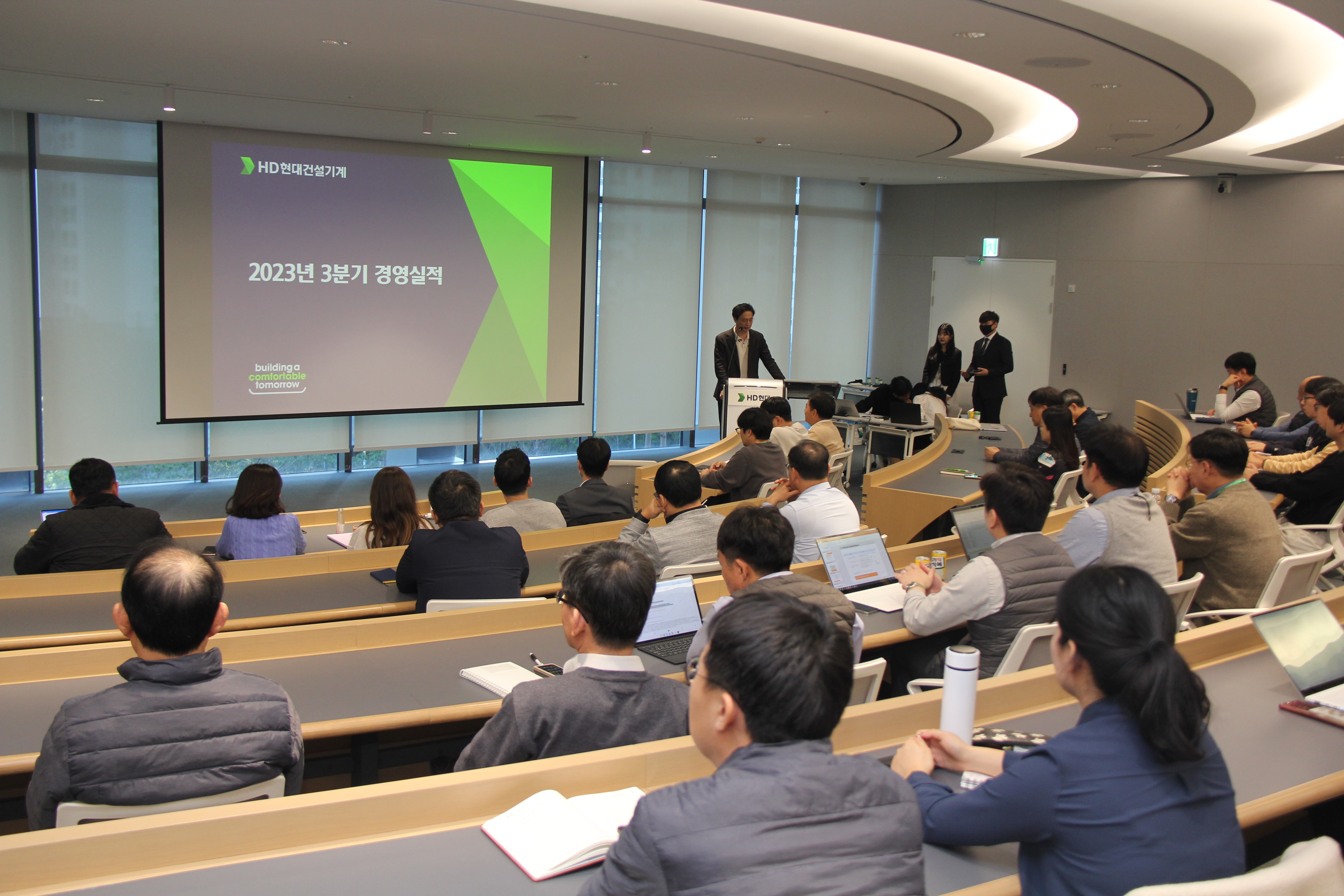 HD현대건설기계 영업본부는 지난 11월 7일 글로벌R&D센터 5층 세미나실에서 ‘하반기 경영현황설명회’를 가졌다.