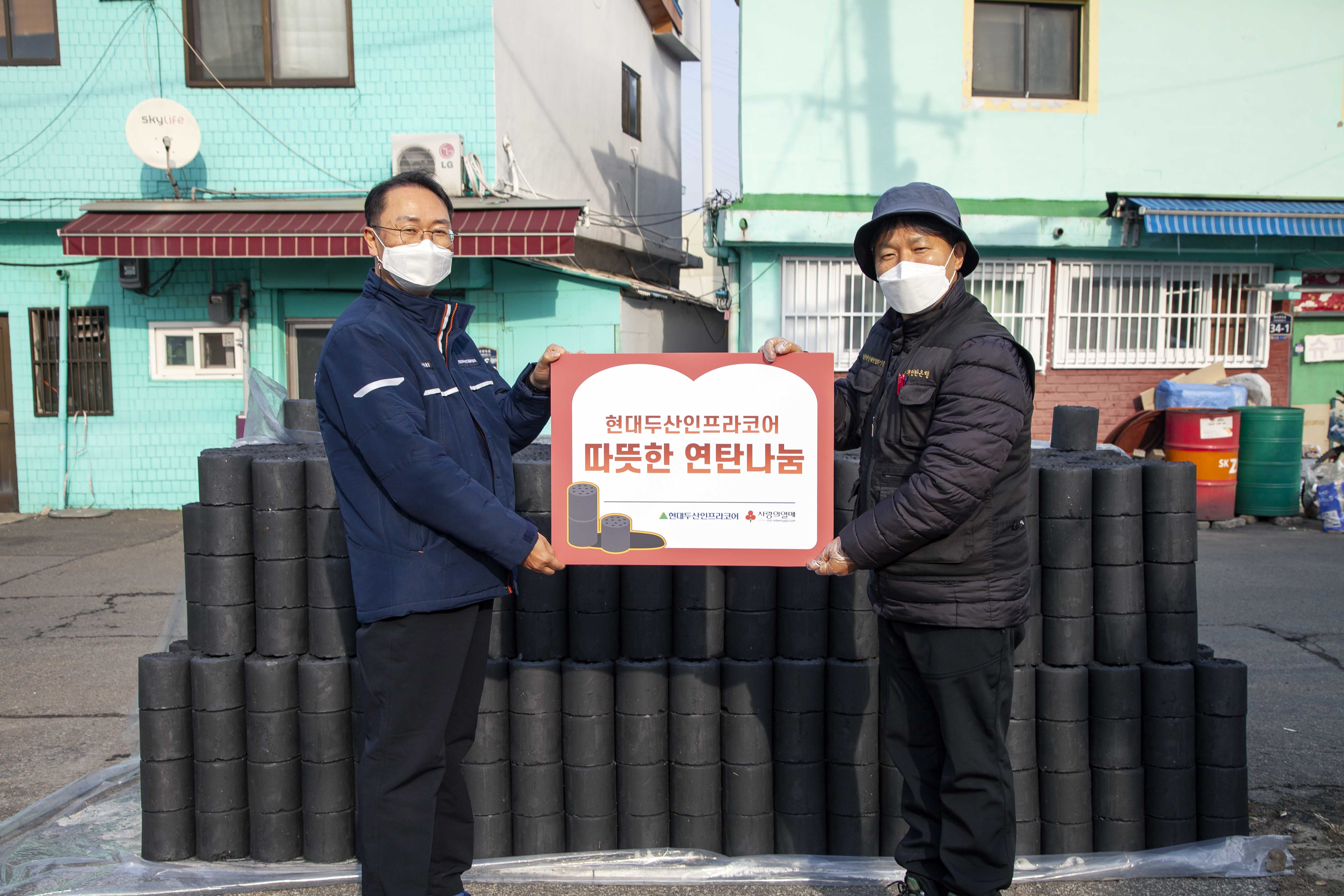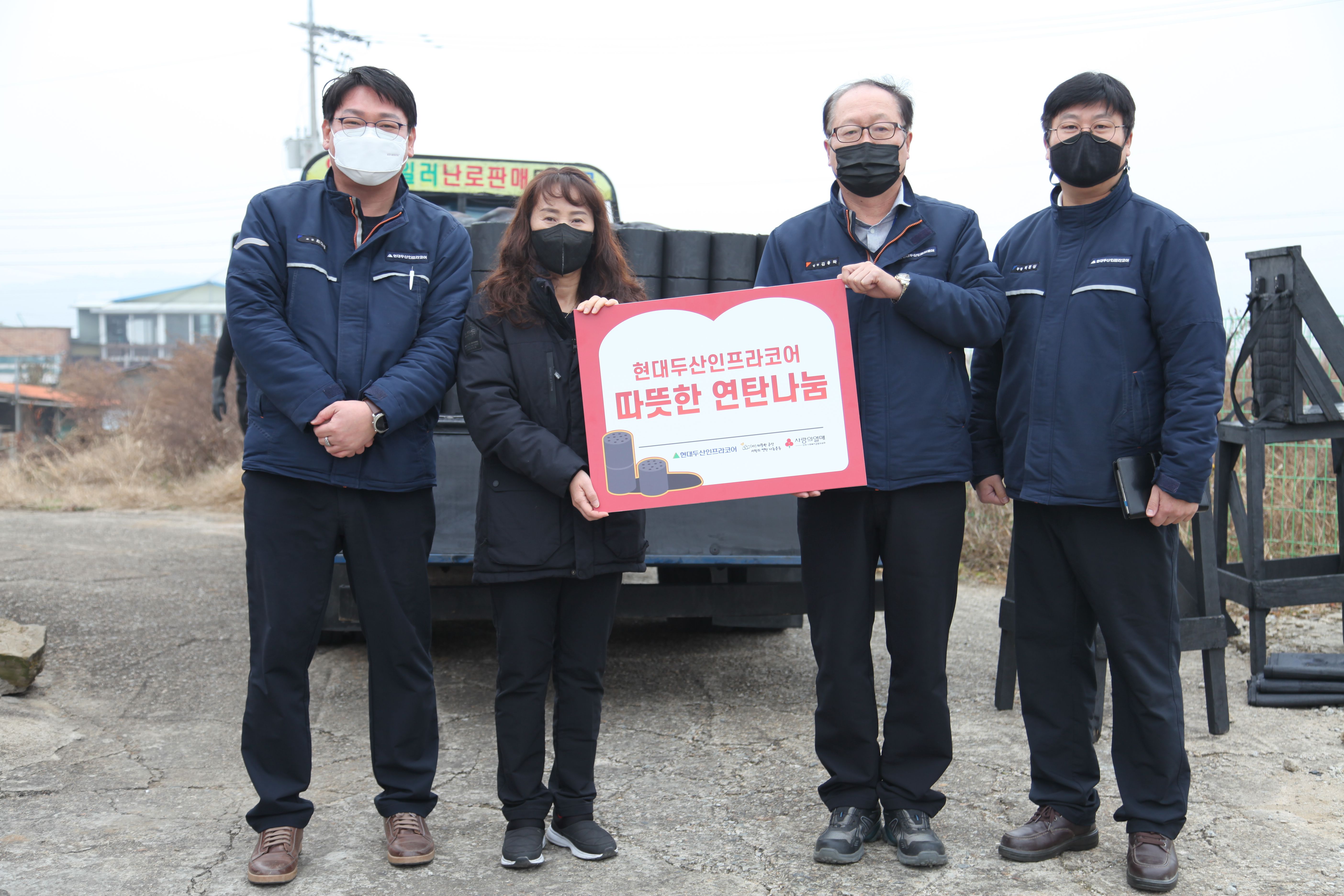 현대두산인프라코어가 연말을 맞이해 지역사회 소외된 이웃을 위한 물품 및 연탄 나눔을 실시했다. 이번 물품 지원 비용은 임직원 기금을 통해 전액 마련되어 의미를 더했다.