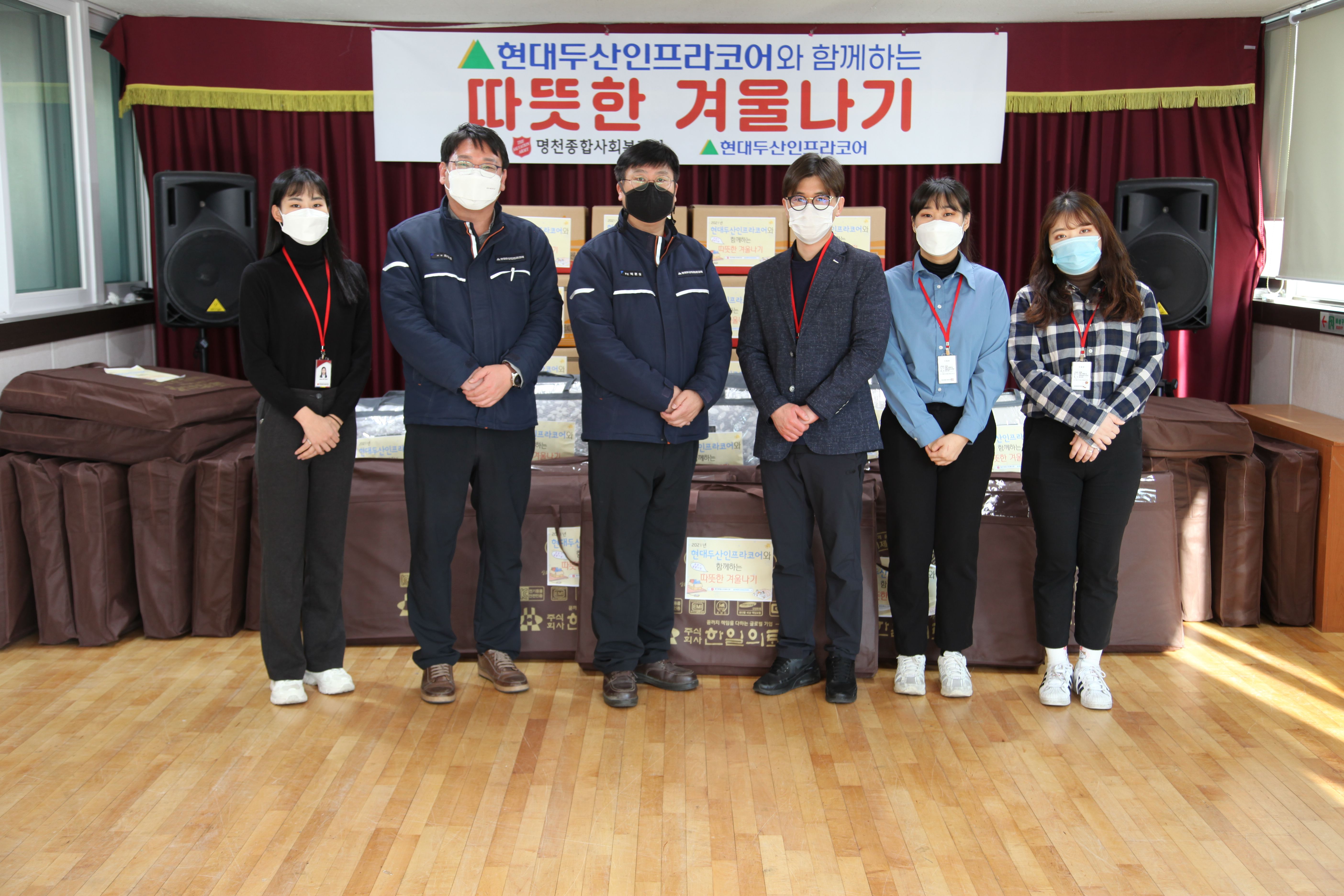 지난 8일(수), 현대두산인프라코어 군산공장장 김용화 상무를 비롯한 현대두산인프라코어 임직원이 군산 및 보령 지역에 난방 용품을 전달했다.