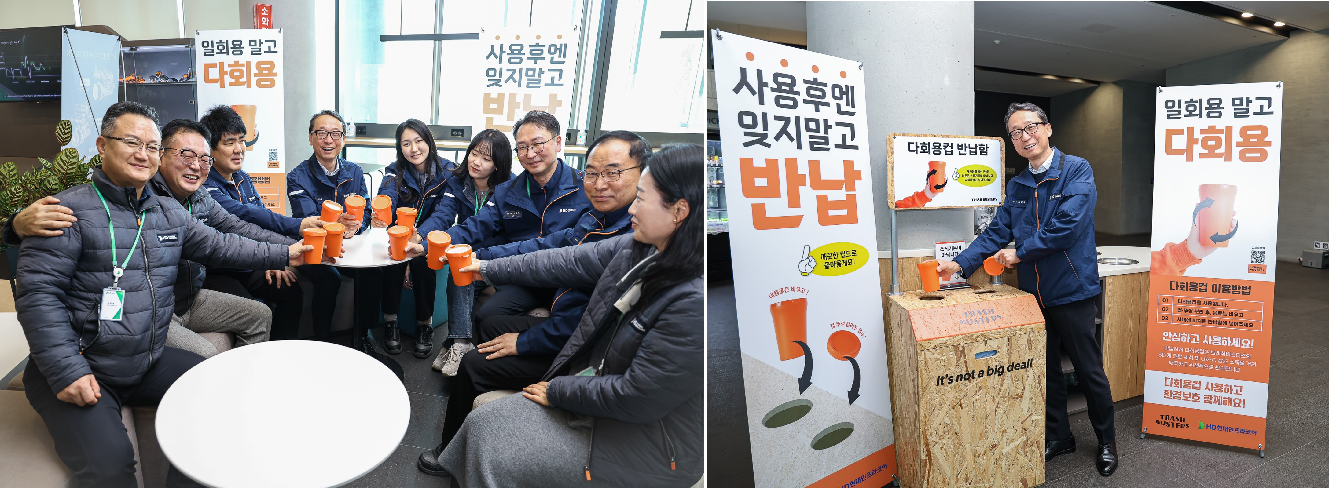HD현대인프라코어 조미정 선임(운영지원팀)은 “그동안 일회용컵 사용을 줄이기 쉽지 않았는데, 다회용컵을 제도적으로 쉽게 사용할 수 있어 환경보호에 기여할 수 있다는 점에서 뿌듯함을 느낀다”고 소감을 밝혔다.