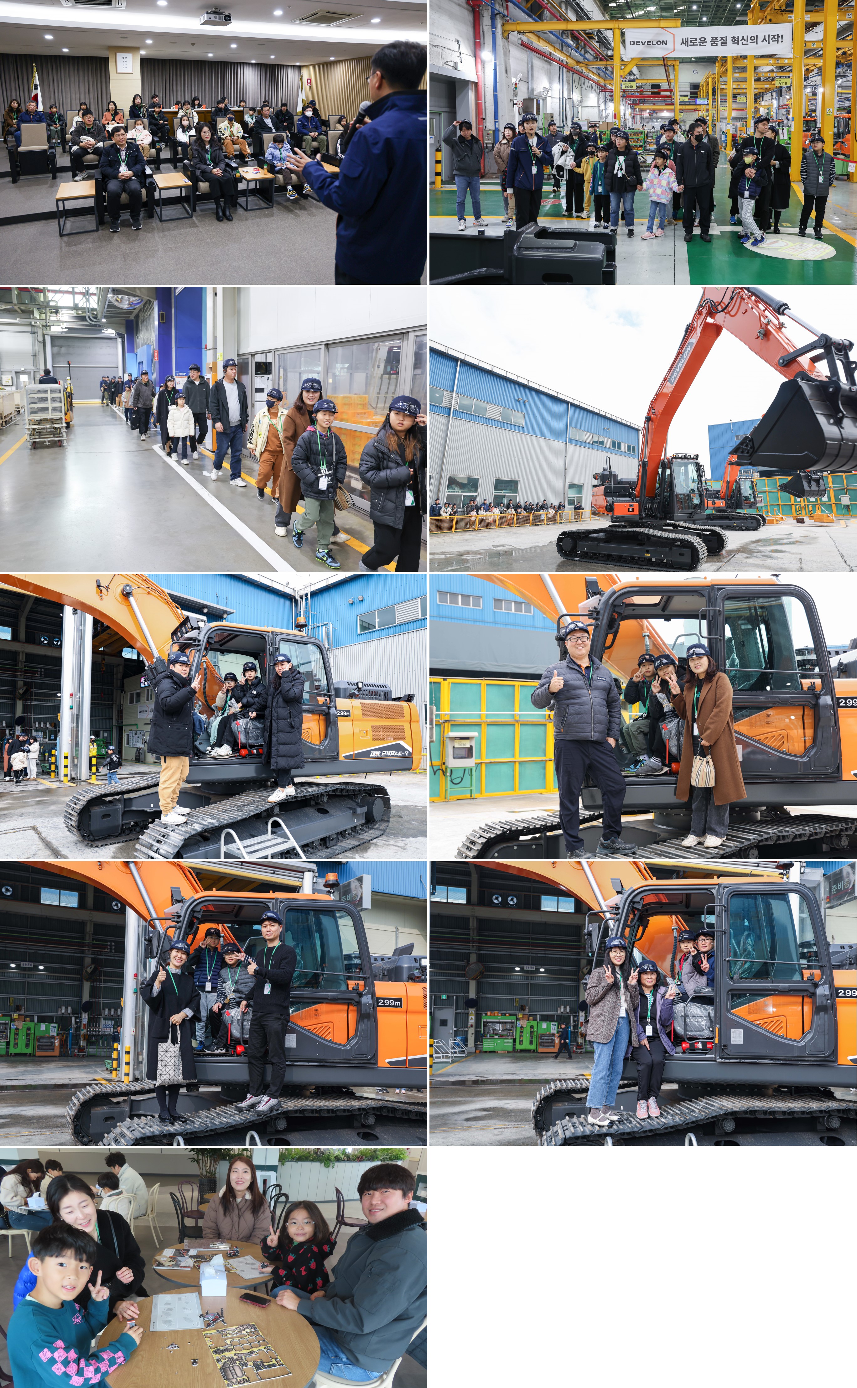 가족들은 굴착기와 굴절식 덤프트럭, 휠로더에 탑승해 기념 촬영을 하고, 직원식당에서 점심식사를 함께하며 행사를 마무리했다.