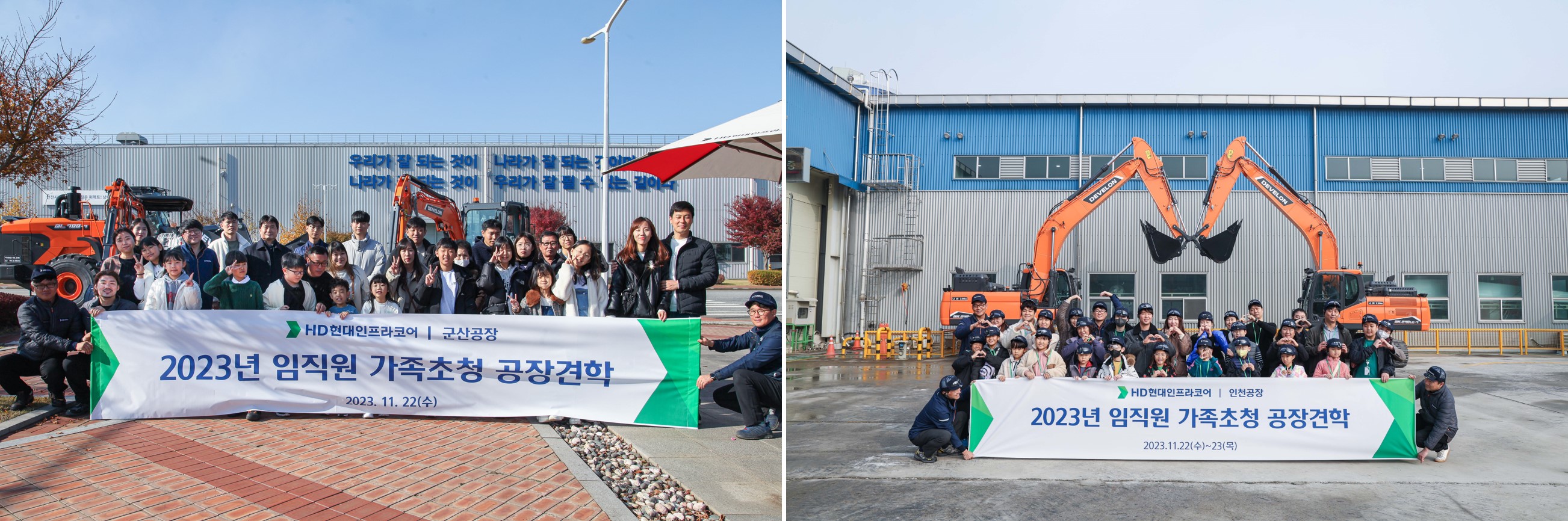 인천공장 견학코스는 GBC 의전실과 역사관, G2엔진 공장, 건설기계 조립공장, 시운전장 투어 후 등나무플러스 식당에서 편지 작성과 3D 퍼즐조립 등의 프로그램으로 구성됐다. 시운전장에서 데모쇼를 관람한 후에는 굴착기에 탑승해 기념사진도 남겼다.