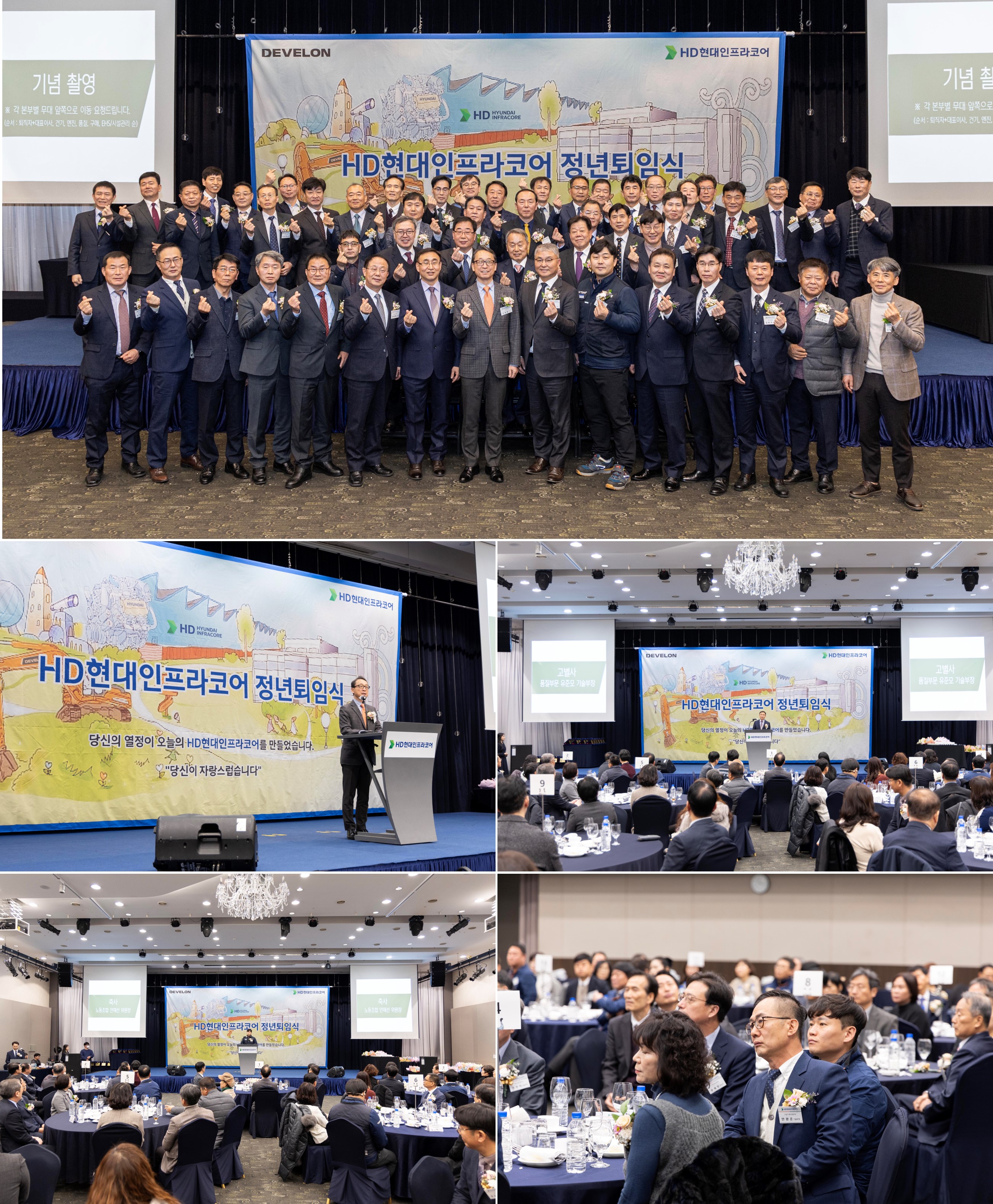 12월 19일 인천시 중구 하버파크 호텔 그랜드볼룸에서 HD현대인프라코어의 베테랑 50명을 위한 특별한 행사가 개최됐다. 최소 30년에서 35년 이상 열과 성을 다해 회사를 이끌어 온 주인공들을 위한 행사다. 영예로운 정년퇴임 행사에는 그동안 가정에서 내조를 해온 배우자들도 함께 했다.