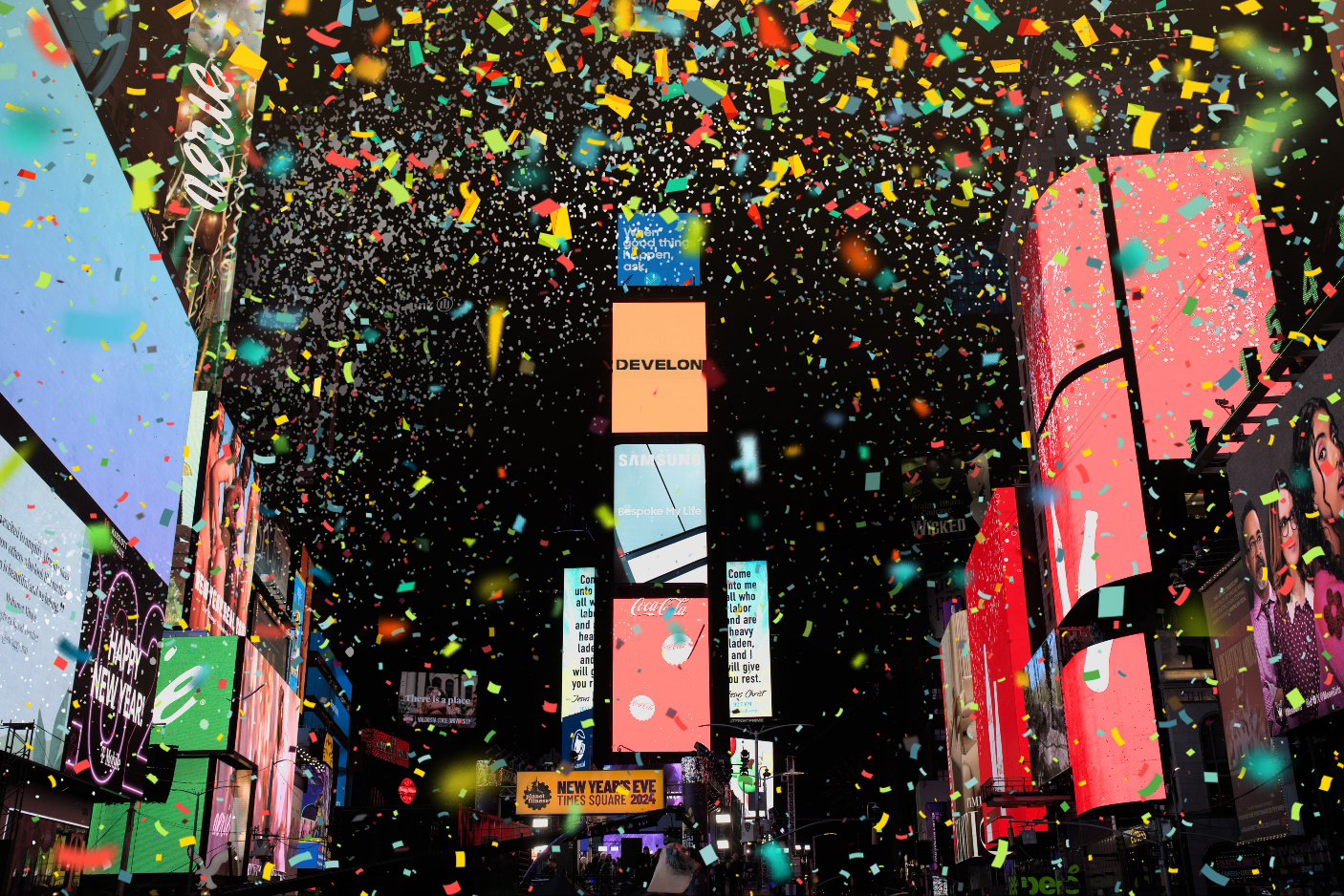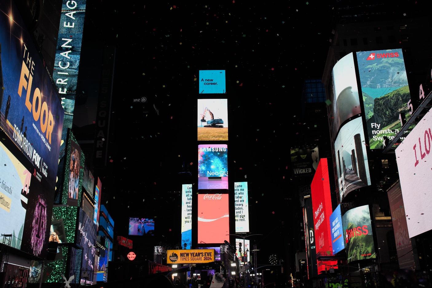 3…2…1…0! 2023년을 마무리하는 카운트다운이 끝나자, HD현대의 건설기계 브랜드인 '디벨론' 브랜드 홍보 영상이 뉴욕 타임스퀘어 전광판에 등장했다.