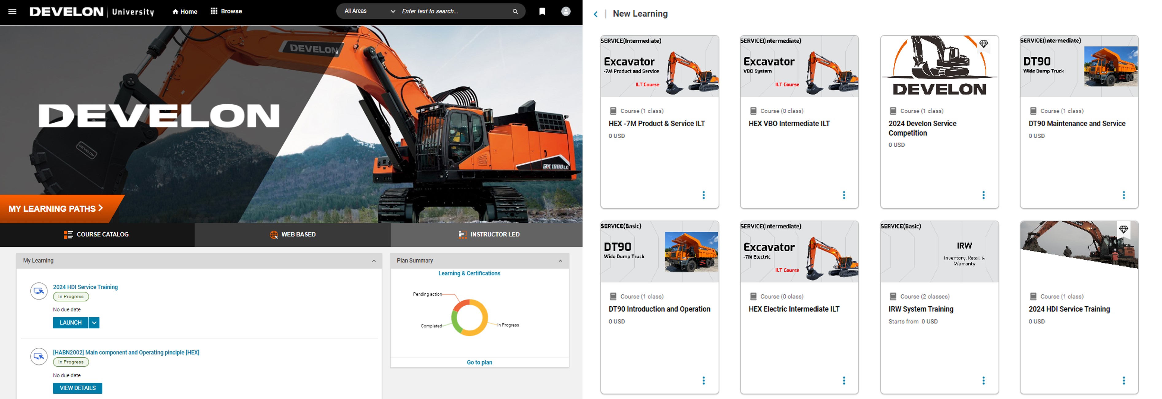 HD현대인프라코어는 집합교육을 통해 중급인 기술인력을 양성하는 동시에 온라인 교육 플랫폼인 ‘디벨론 유니버시티(DEVELON University)’를 통해 딜러 내 테크니션들의 기술력 성장을 지속 지원할 계획이다.
