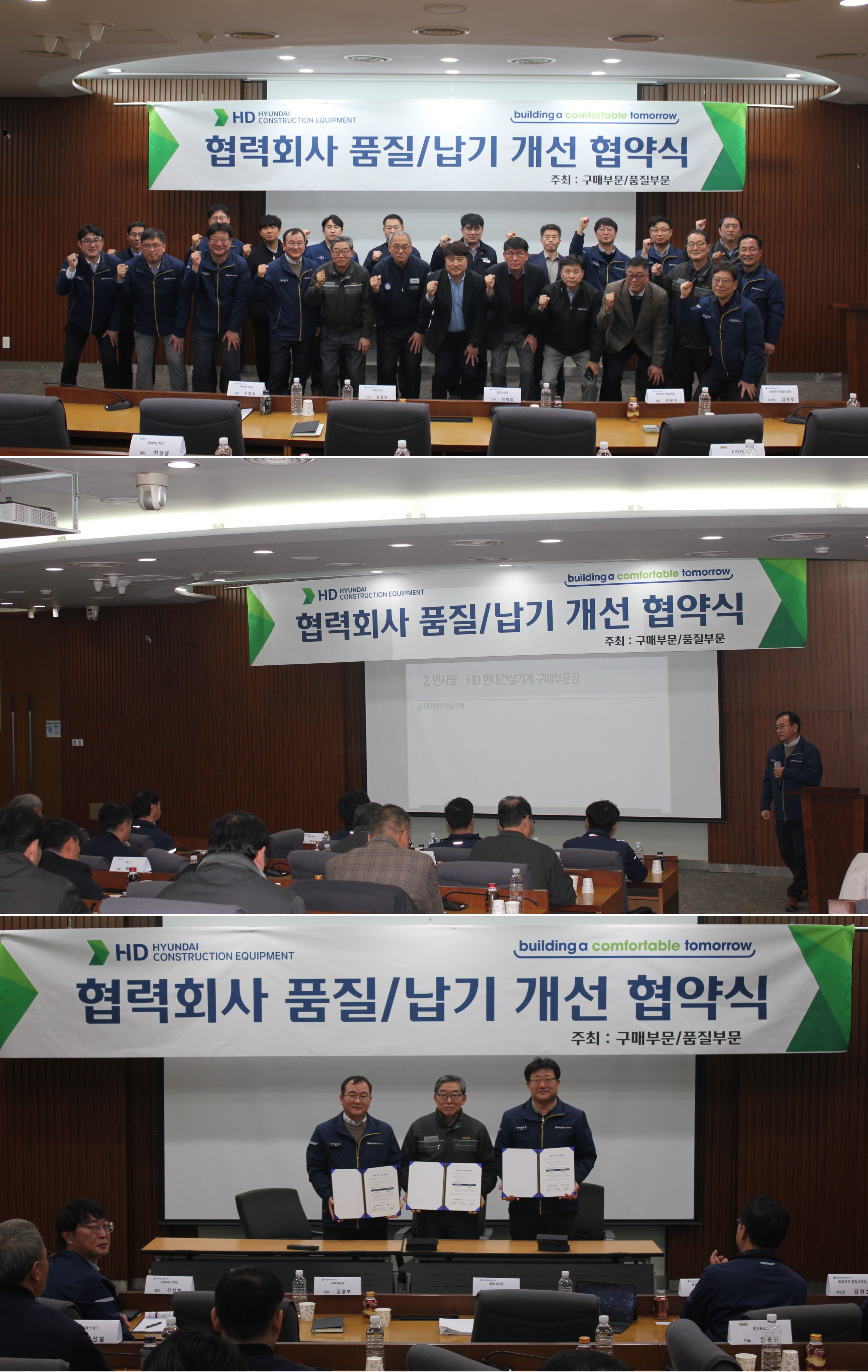 HD현대건설기계가 2월 23일 울산 인재교육원에서 ‘협력사 품질·납기 개선 지원 협약식’을 시행했다. 구매부문과 품질부문이 협업해 개선 지원 통합팀을 운영하며 협력사의 공정 개선, 기량 향상, 품질 제도 보완을 추진하는 것이 주요 내용이다.