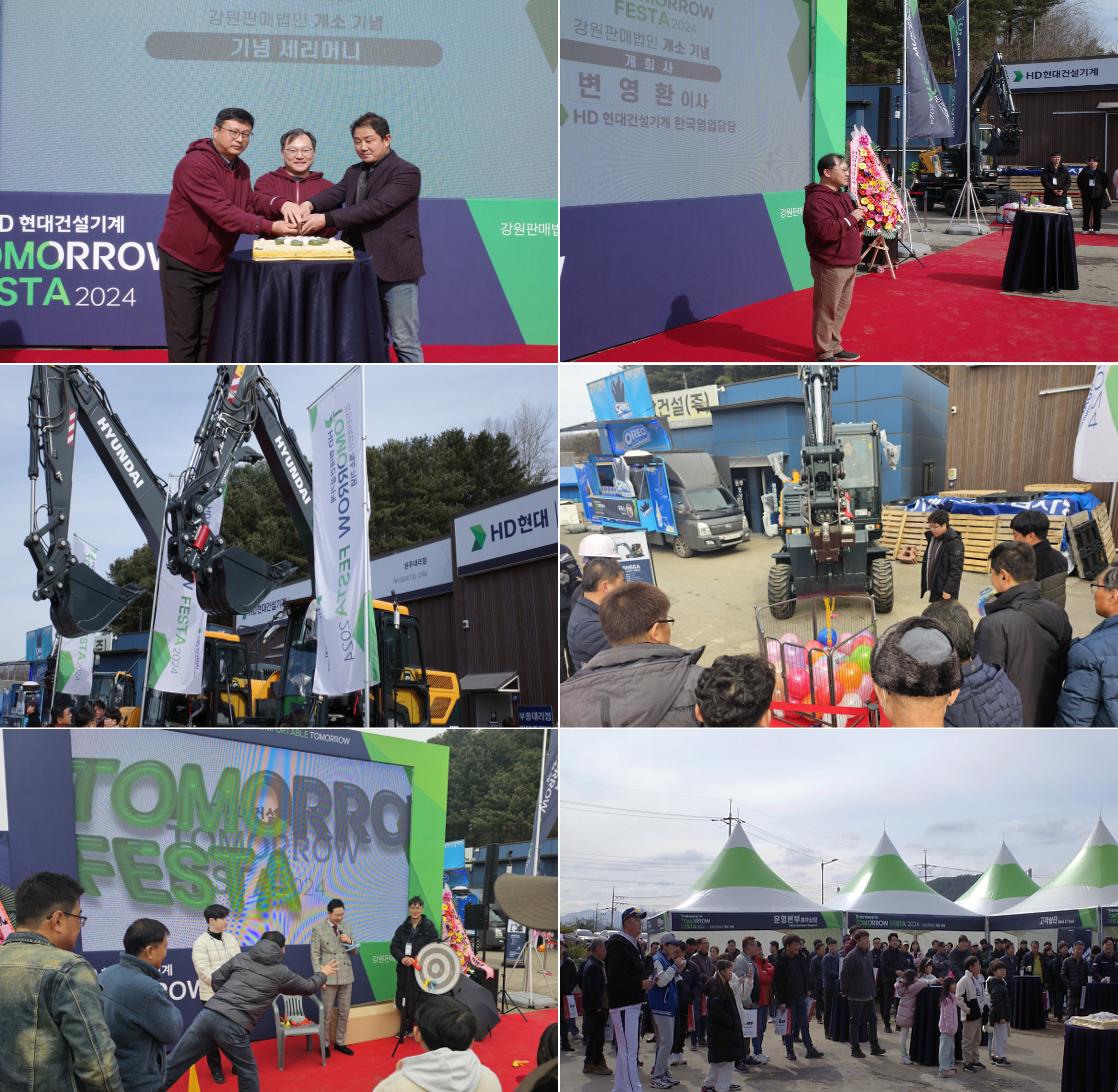 이날 행사는 신규 출시 어태치먼트와 주력 장비 홍보 및 고객 소통 강화를 위한 목적과 함께 강원지역 신규 판매법인의 개소를 축하하는 의미도 있었다. 강원 판매법인의 희망찬 내일을 응원하는 ‘TOMORROW 기념식’과 신규 어태치먼트 전시 및 국내 주력 모델인 HX65AMT, HW65A, HW155A, HX320A에 시승을 할 수 있는 기회도 마련됐다.