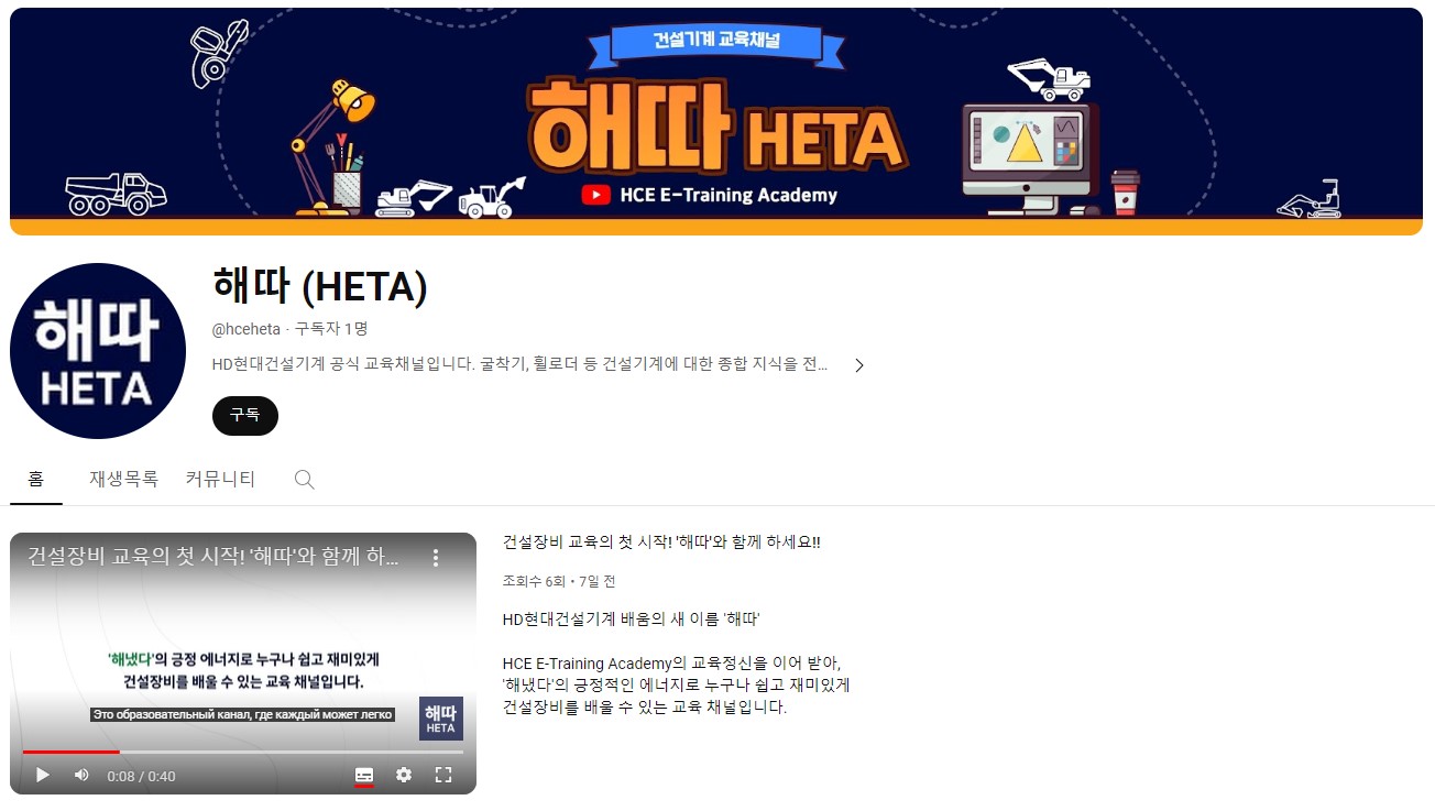 HD현대건설기계가 3월 15일 대중들에게 건설기계를 보다 쉽게 알리기 위한 교육 유튜브 채널 ‘해따(HETA)’를 오픈했다. ‘해따’는 ‘해냈다’는 성취의 의미를 담고 있다.