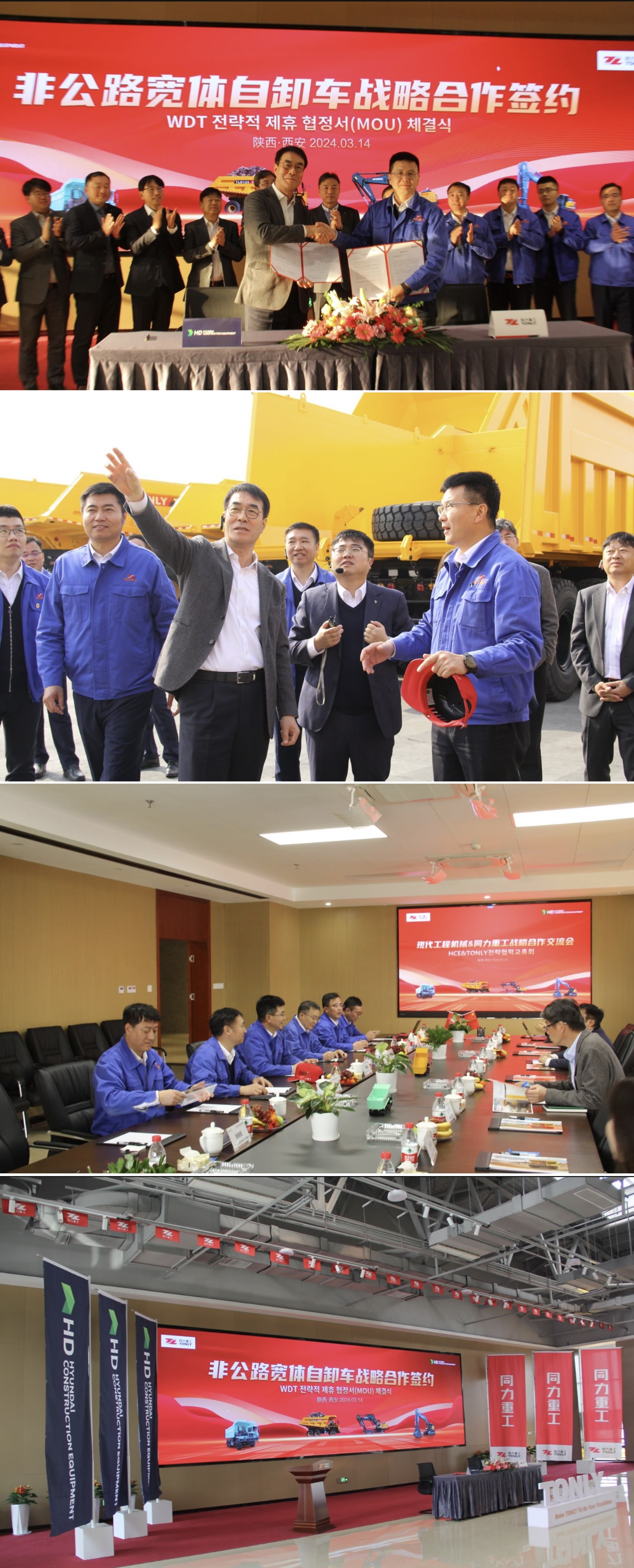 HD현대건설기계가 3월 14일 중국 섬서성 서안시에서 와이드 덤프트럭(WDT, Wide-body Dump Truck) 선두업체인 통리(TONLY)와 전략적 제휴 협약을 체결했다.