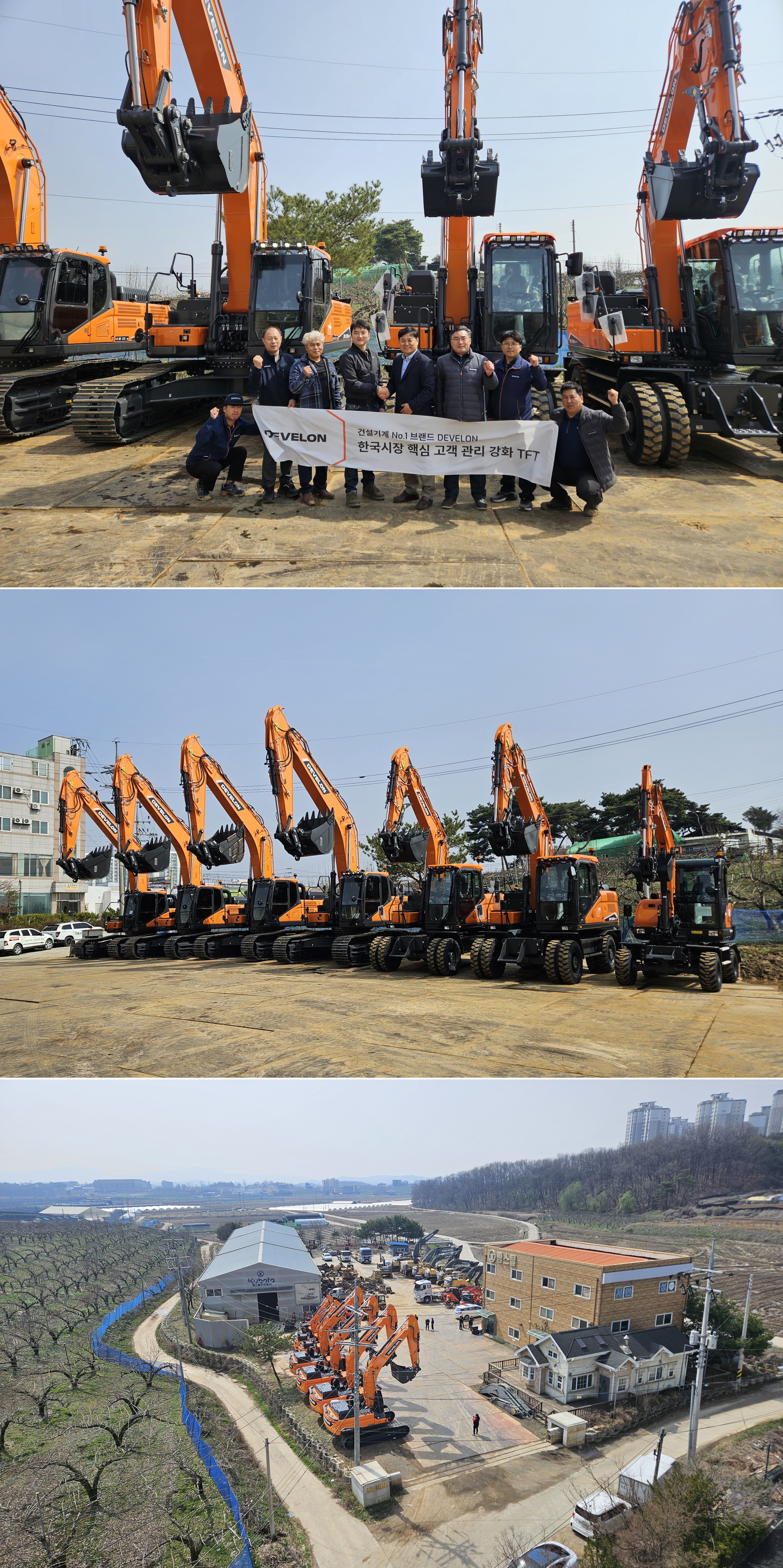 HD현대인프라코어가 3월 27일 국내 최대 건설기계 렌탈 회사에 약 20억원 규모의 디벨론 중대형 굴착기 11대를 납품했다.