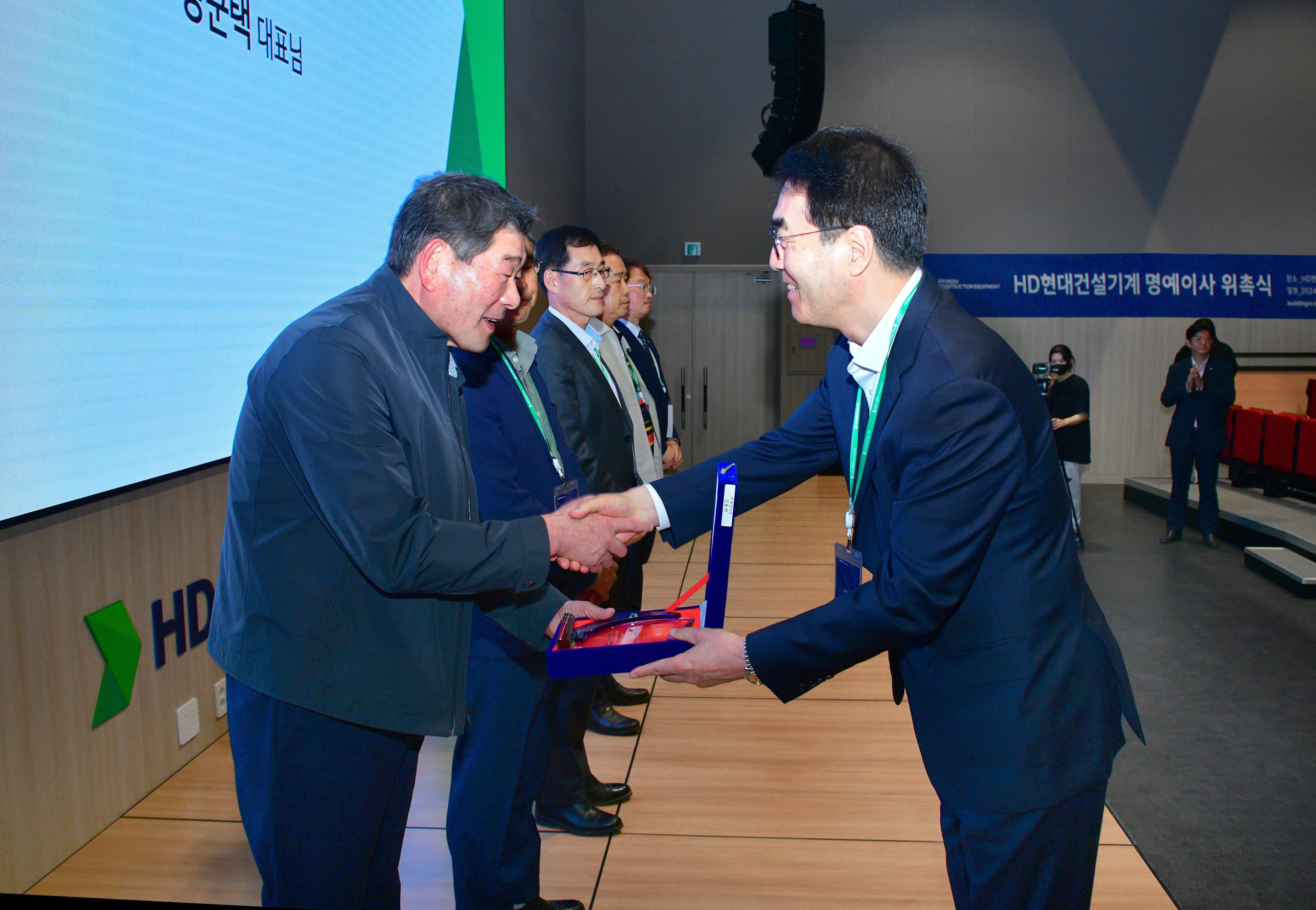 이날 행사에서 HD현대건설기계는 82명의 우수고객을 ‘명예이사’로 위촉했으며, 최철곤 사장이 직접 고객들에게 위촉패와 기념품을 전달하며 감사의 뜻을 전했다.